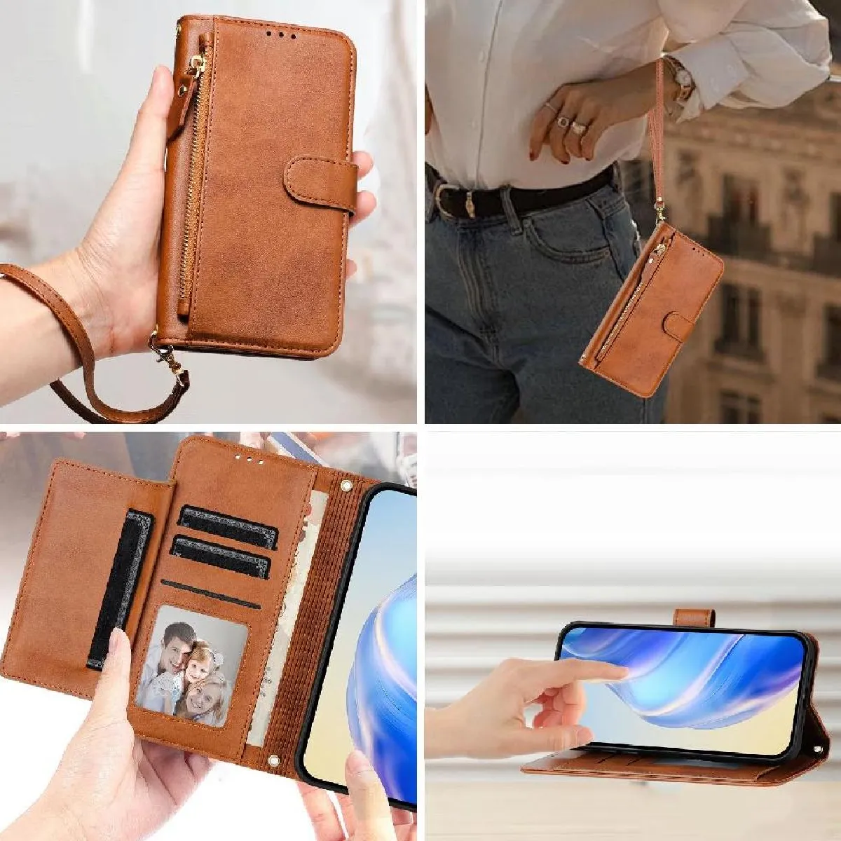 Fonctionnalité du portefeuille 2 en 1: cet étui portefeuille élégant comprend six emplacements pour cartes, un emplacement de caisse visible et une poche à fermeture éclair, ce qui facilite le transport de votre pièce d'identité, de vos cartes de crédit, et de l'argent sans la majeure partie d'un portefeuille traditionnel.