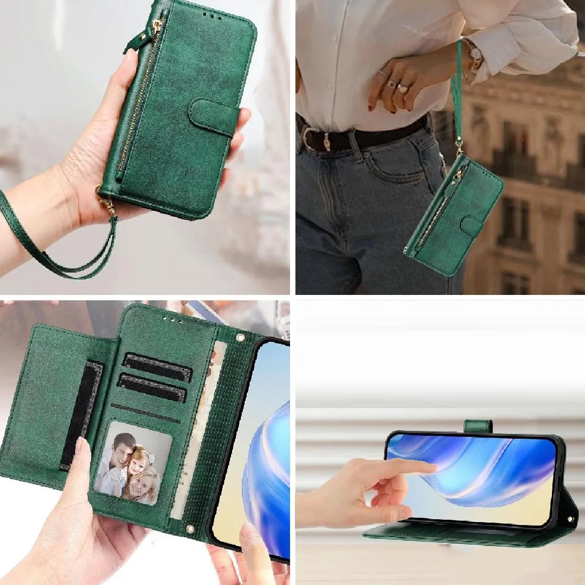 Coque pour Flip Étui Pour Google Pixel 4A 5G Fermeture Éclair Titulaire De La Carte Cuir PU Magnétique GANGXUN Vert