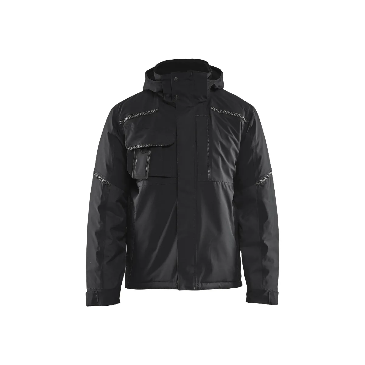 Détails réfléchissants devant, derrière, sur la capuche et les manches.