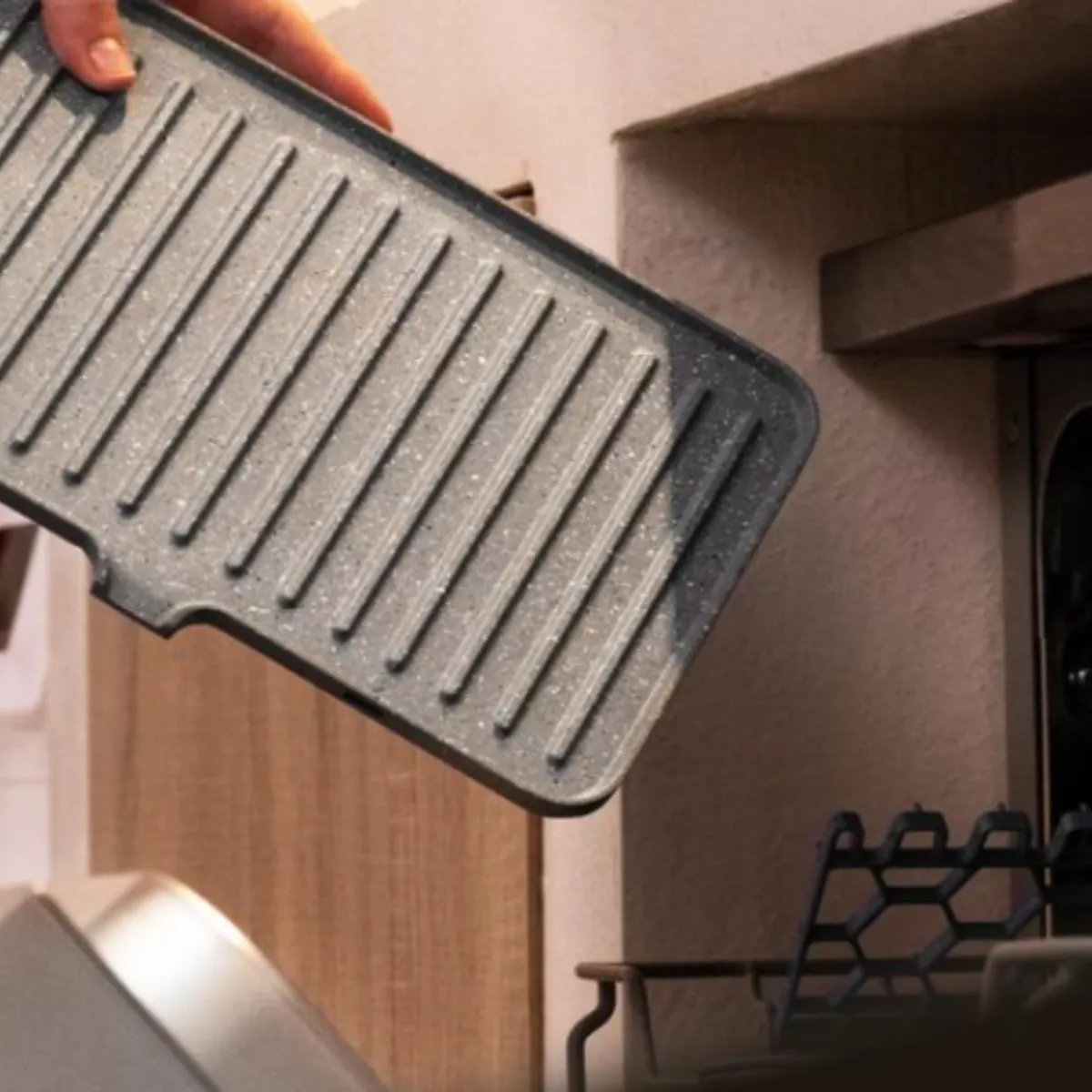 Le revêtement RockStone contribue à limiter l'adhérence et facilite le rinçage après chaque service. Les plaques amovibles se détachent pour un lavage minutieux, pratique au quotidien. Sans minuteur, le suivi se fait directement via le témoin de température et le réglage du thermostat, offrant une maîtrise simple et directe. La surface de 29 x 23 cm aide à regrouper la cuisson, réduisant les allers-retours entre les fournées pour des repas servis à bonne cadence.