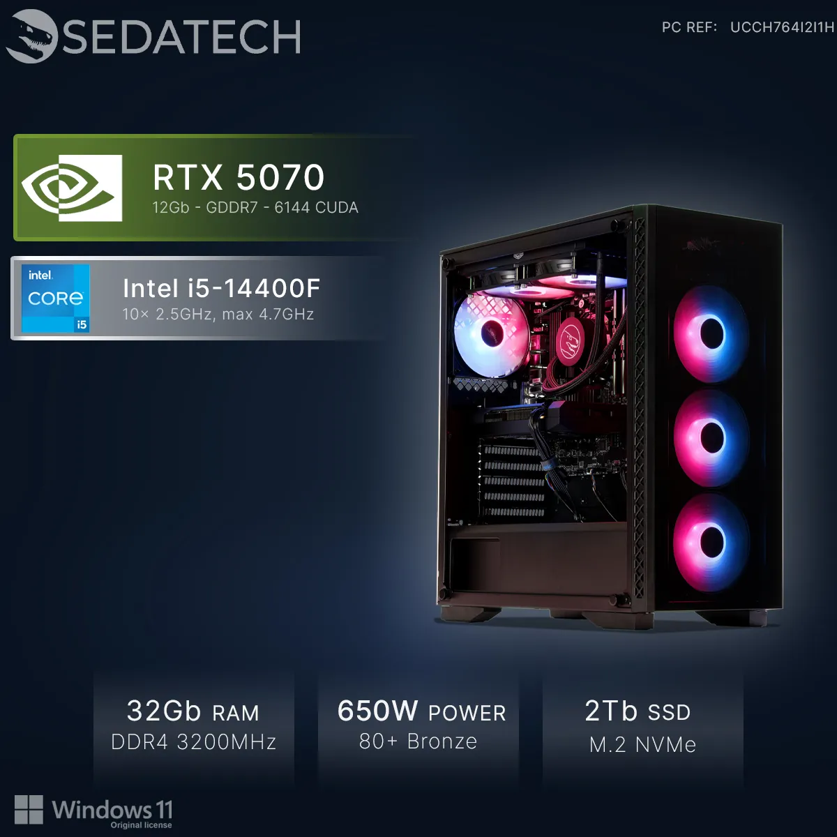 Sedatech PC Gamer • Intel i5-14400F • RTX5070 • 32Go RAM • 2To SSD M.2 • Windows 11