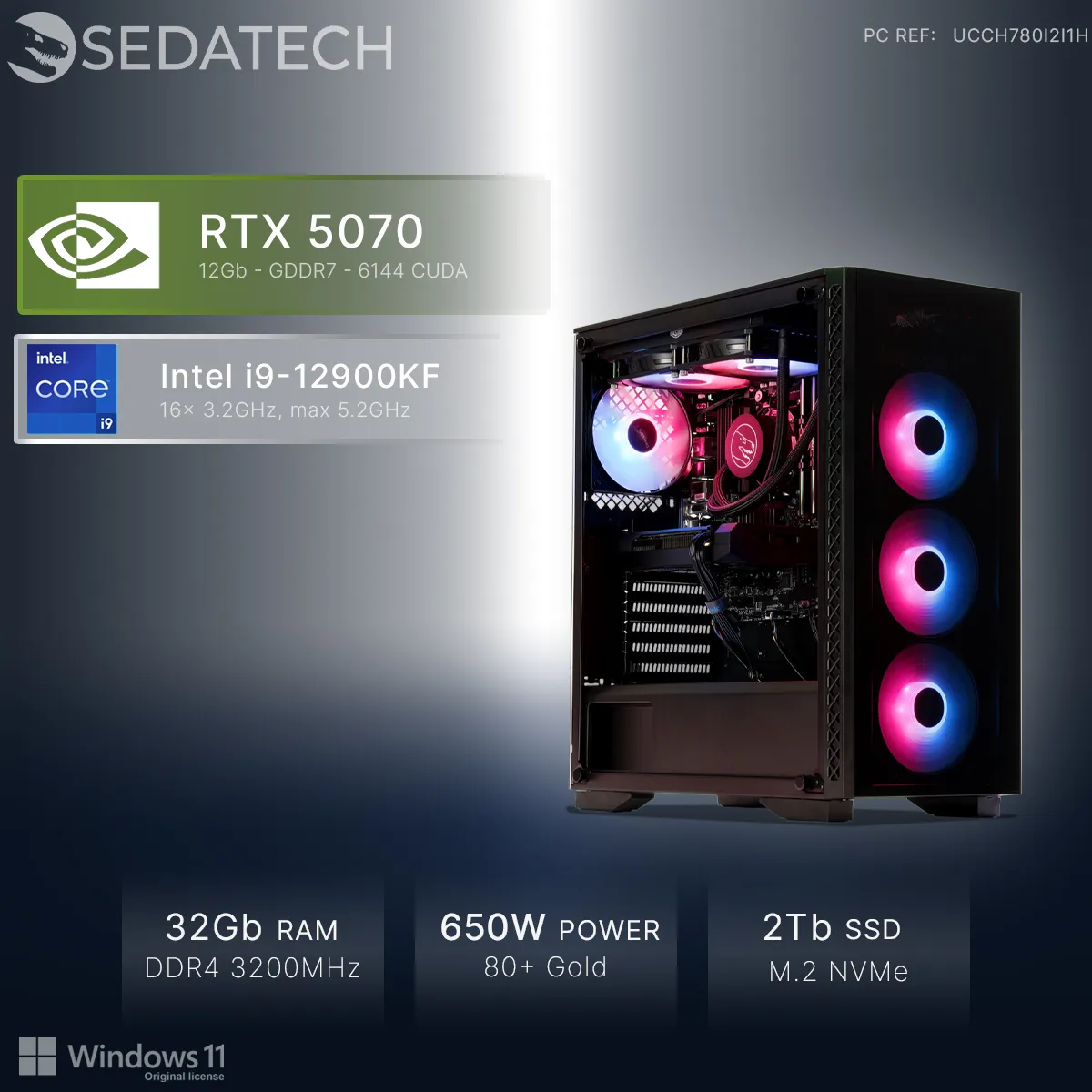 Sedatech PC Gamer • Intel i9-12900KF • RTX5070 • 32Go RAM • 2To SSD M.2 • Windows 11