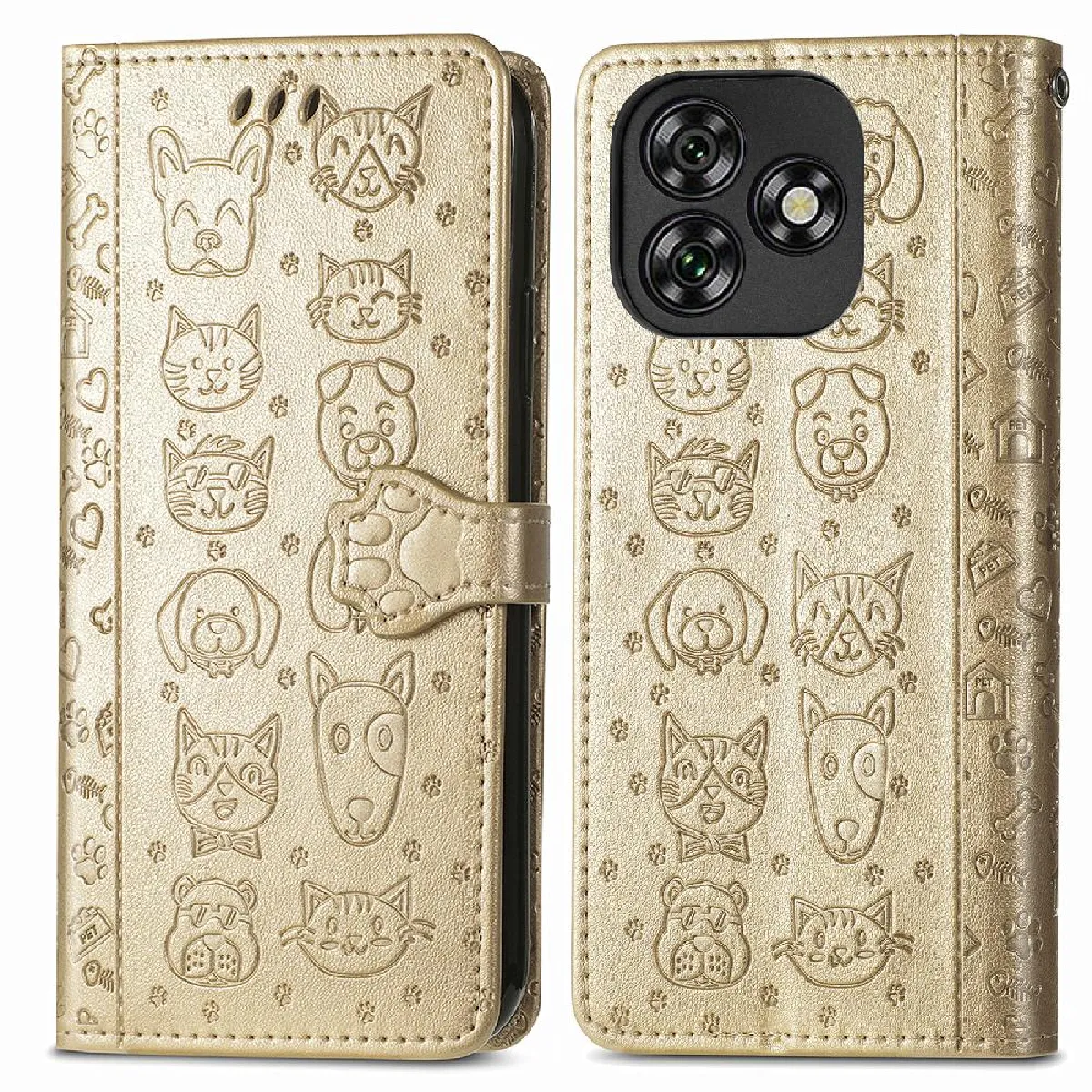Coque pour Étui Pour Oukitel C53 Animaux De Dessin Animé Sangle Courte Étui En Cuir Couverture Rabotant Antichoc GANGXUN Doré