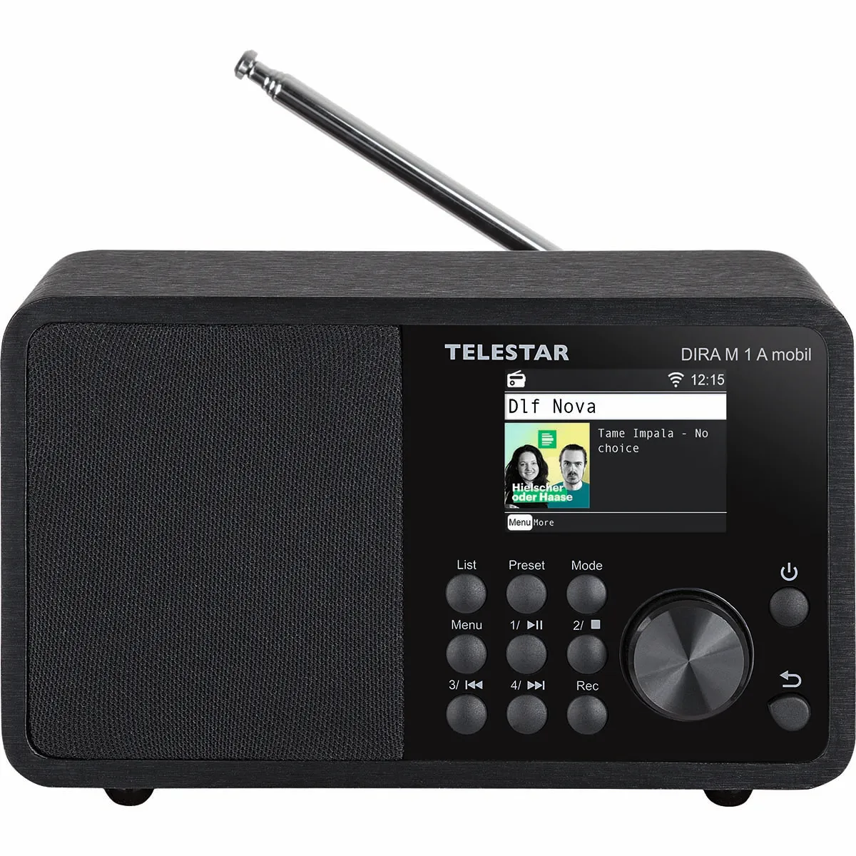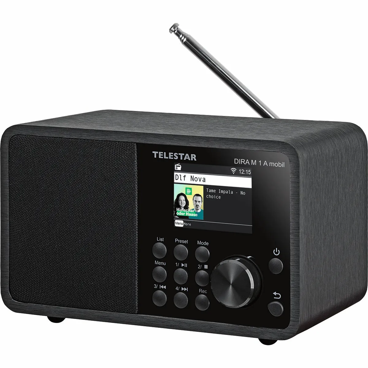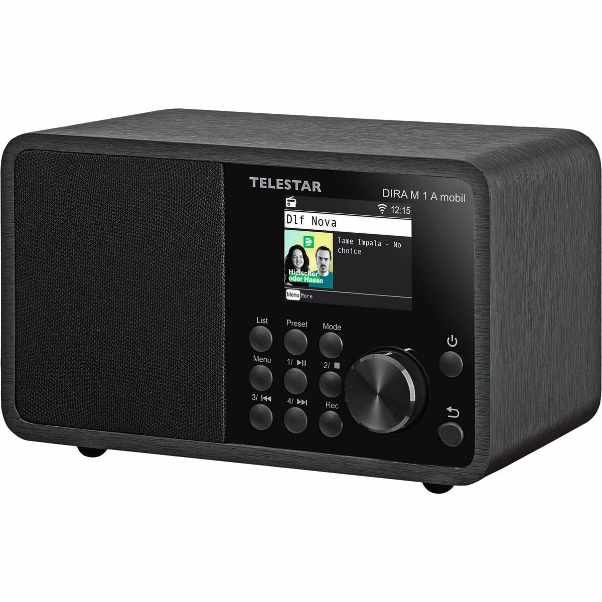 Le boîtier Noir aux dimensions maîtrisées (19.2 × 12.5 × 11.8 cm) se pose aisément sur une étagère ou un plan de travail, tout en restant stable grâce à son poids de 1180 g. Les 10 mémoires de présélection et la télécommande fournie favorisent un accès rapide aux contenus. La batterie Lithiumion intégrée soutient l'usage nomade, tandis que l'entrée auxiliaire et le port USB facilitent les branchements ponctuels lorsque cela est nécessaire.