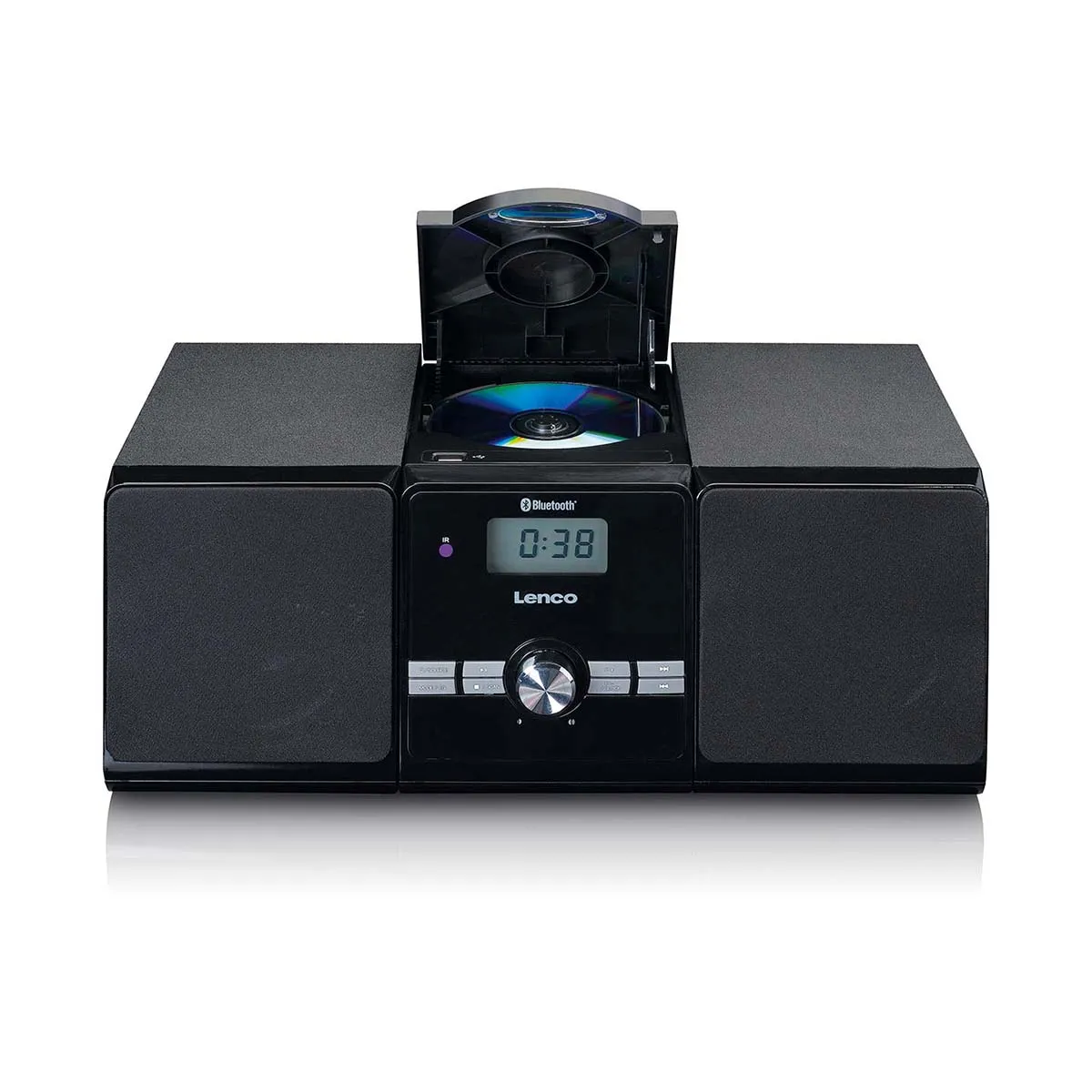 La micro-chaîne LENCO MC-030 réunit l'essentiel pour un usage quotidien : Bluetooth pour diffuser depuis smartphone ou tablette, lecteur CD compatible MP3 pour vos disques, port USB pour clés contenant des titres numériques, et radio FM avec mémorisation. Le grand affichage LCD rend les informations de lecture lisibles et accélère le choix des stations. La télécommande incluse permet d'ajuster le volume, de changer de piste ou de basculer entre les sources depuis votre canapé, pour une utilisation fluide dans la durée.