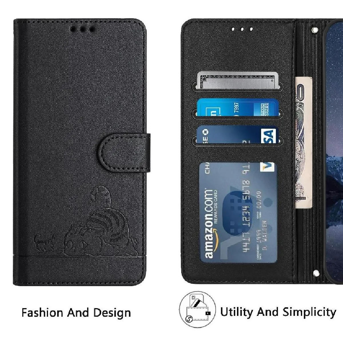 Coque pour Étui Pour Itel S23 Plus Porte-fente Pour Carte, Portefeuille À Rabot Rfid Chat GANGXUN Noir