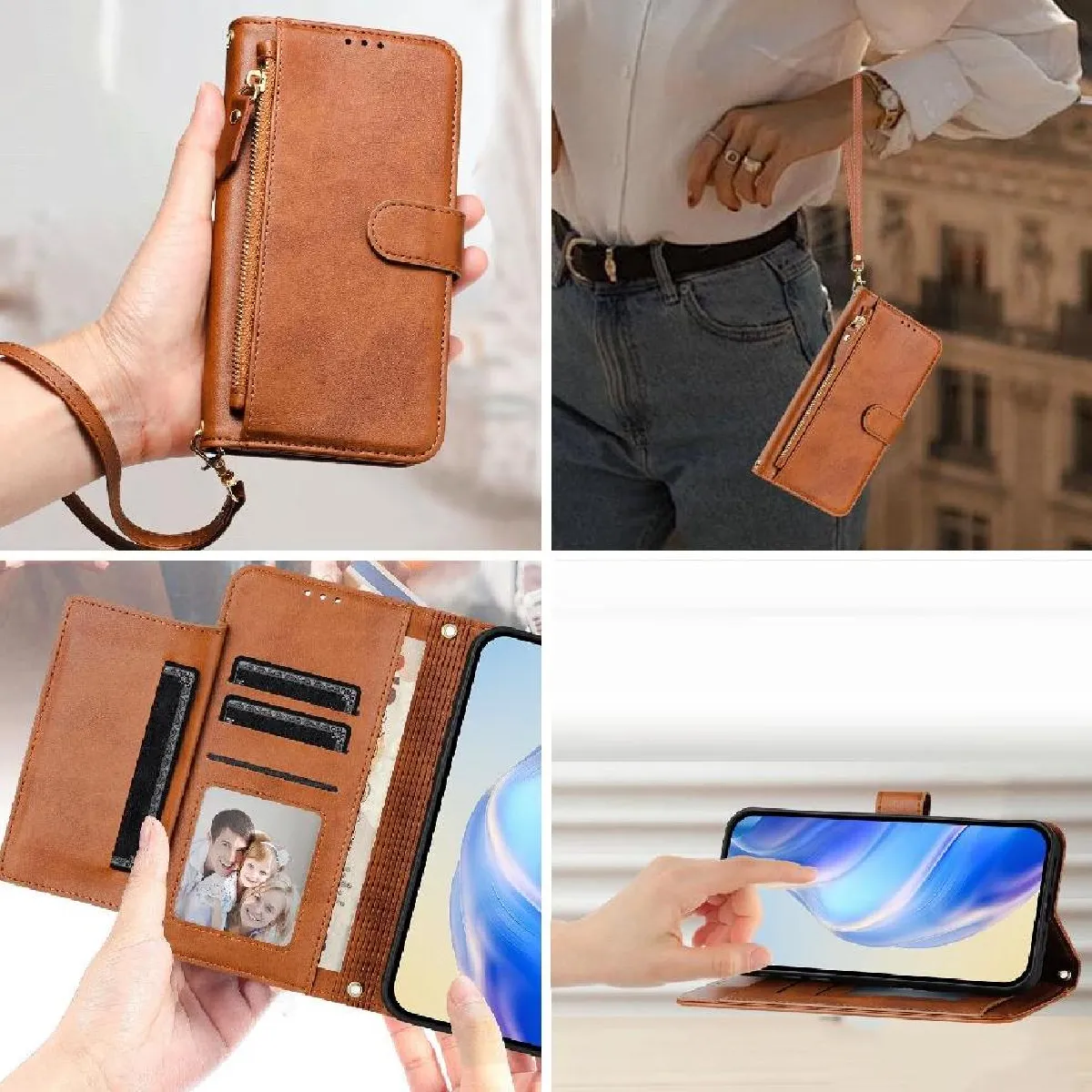 Fonctionnalité du portefeuille 2 en 1: cet étui portefeuille élégant comprend six emplacements pour cartes, un emplacement de caisse visible et une poche à fermeture éclair, ce qui facilite le transport de votre pièce d'identité, de vos cartes de crédit, et de l'argent sans la majeure partie d'un portefeuille traditionnel.