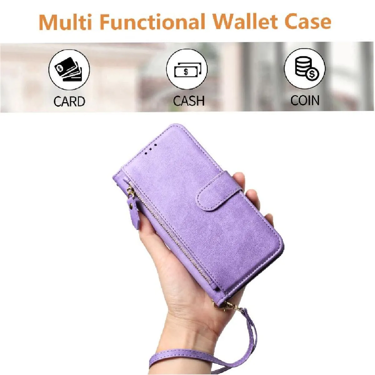 Fonctionnalité du portefeuille 2 en 1: cet étui portefeuille élégant comprend six emplacements pour cartes, un emplacement de caisse visible et une poche à fermeture éclair, ce qui facilite le transport de votre pièce d'identité, de vos cartes de crédit, et de l'argent sans la majeure partie d'un portefeuille traditionnel.