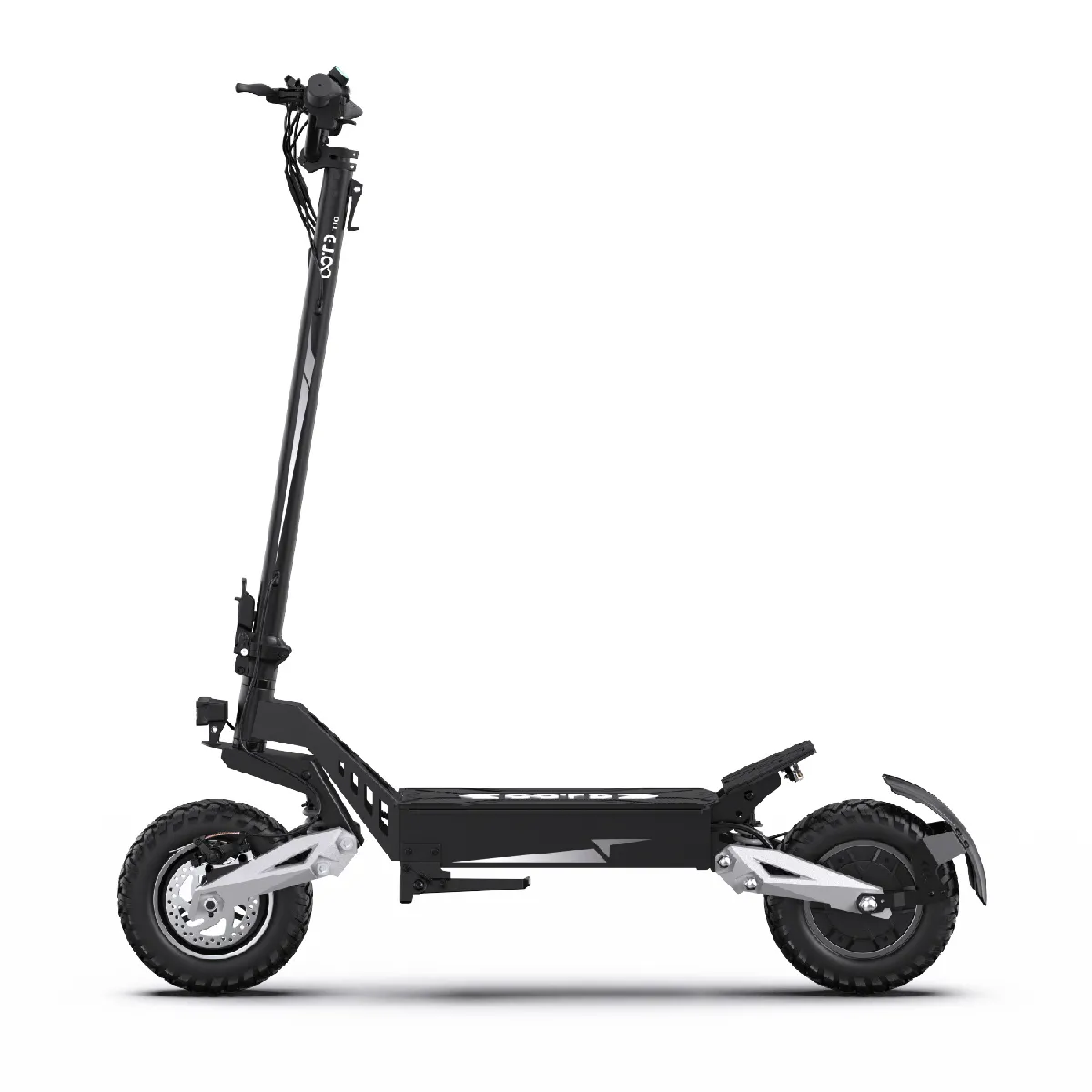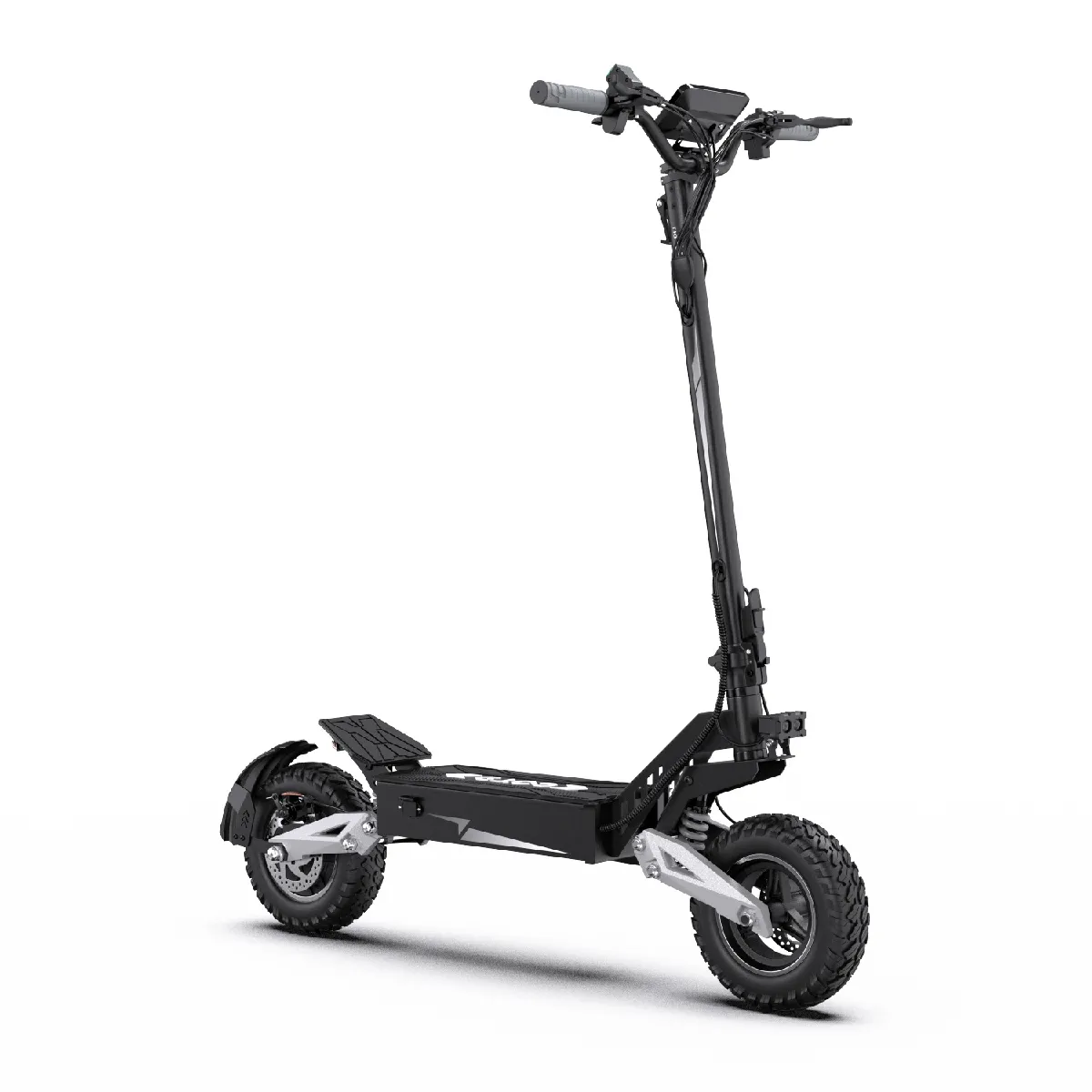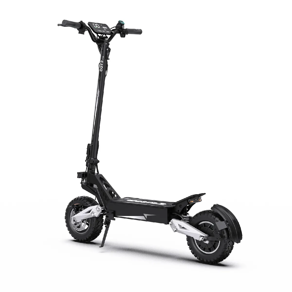 Les doubles freins à disque de 140 mm assurent un freinage fiable à grande vitesse, tandis que les clignotants à 270° et les feux stop clignotants améliorent la visibilité et réduisent les risques de collision arrière. Un phare grand angle et un avertisseur sonore puissant renforcent la sécurité par faible luminosité ou sous la pluie.