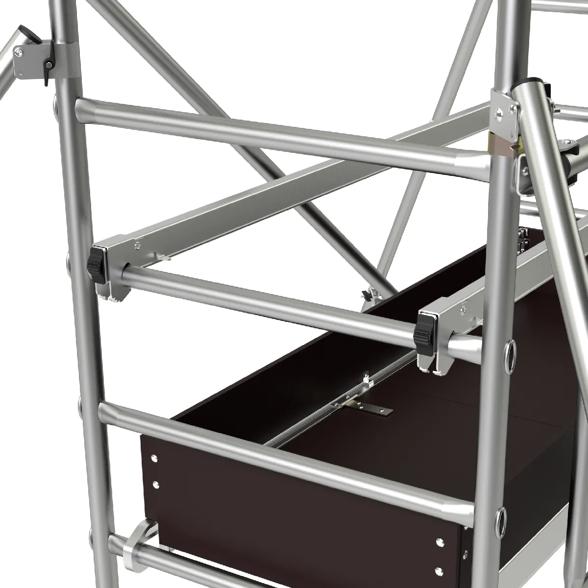 - Plateforme 1.48 x 0.58 m avec trappe et plinthes pour un accès sécurisé et la protection des outils