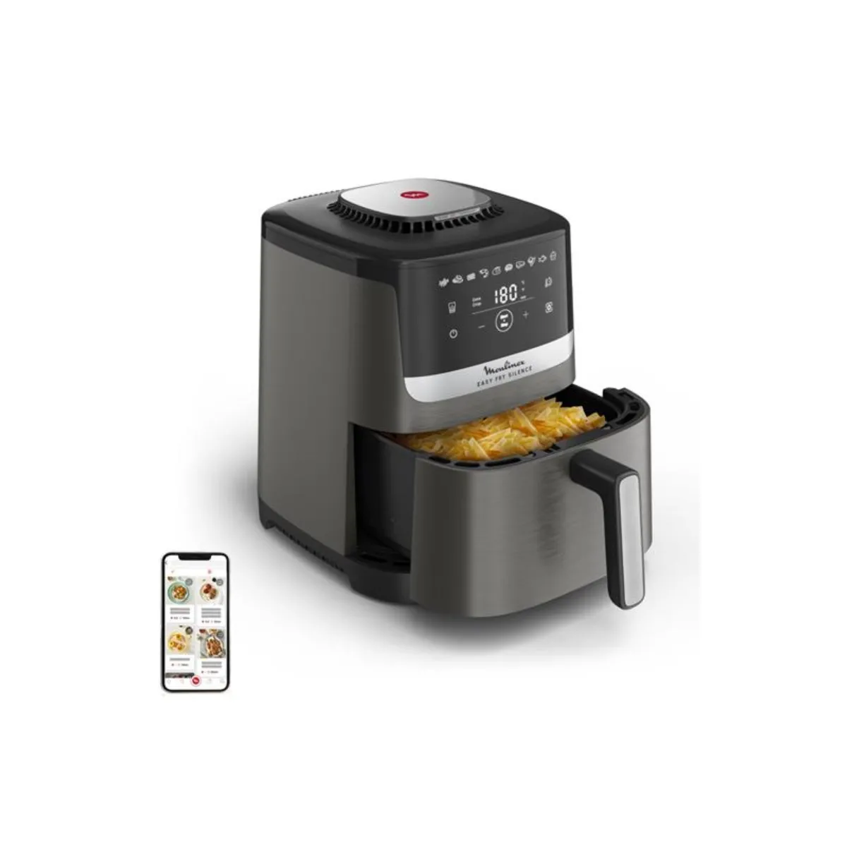Friteuse sans huile Easy Fry Silence - 1670 W - 10 programmes - thermostat réglable - jusqu’à 220 °C - écran tactile - technologie Extra Crisp - panier antiadhésif compatible lave-vaisselle