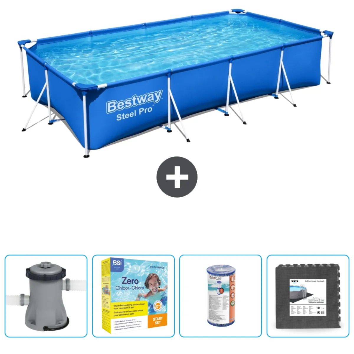 Ce forfait d'entretien a été spécialement élaboré pour entretenir correctement et durablement votre piscine. Ce forfait contient tout ce dont vous avez besoin pour garder votre eau en parfait état tout au long de l'été. De plus, vous trouverez toutes les informations nécessaires à l'utilisation des éléments d'entretien dans la « Brochure Piscine WAYS » fournie.Y compris la cartouche filtrante Bestway de type I