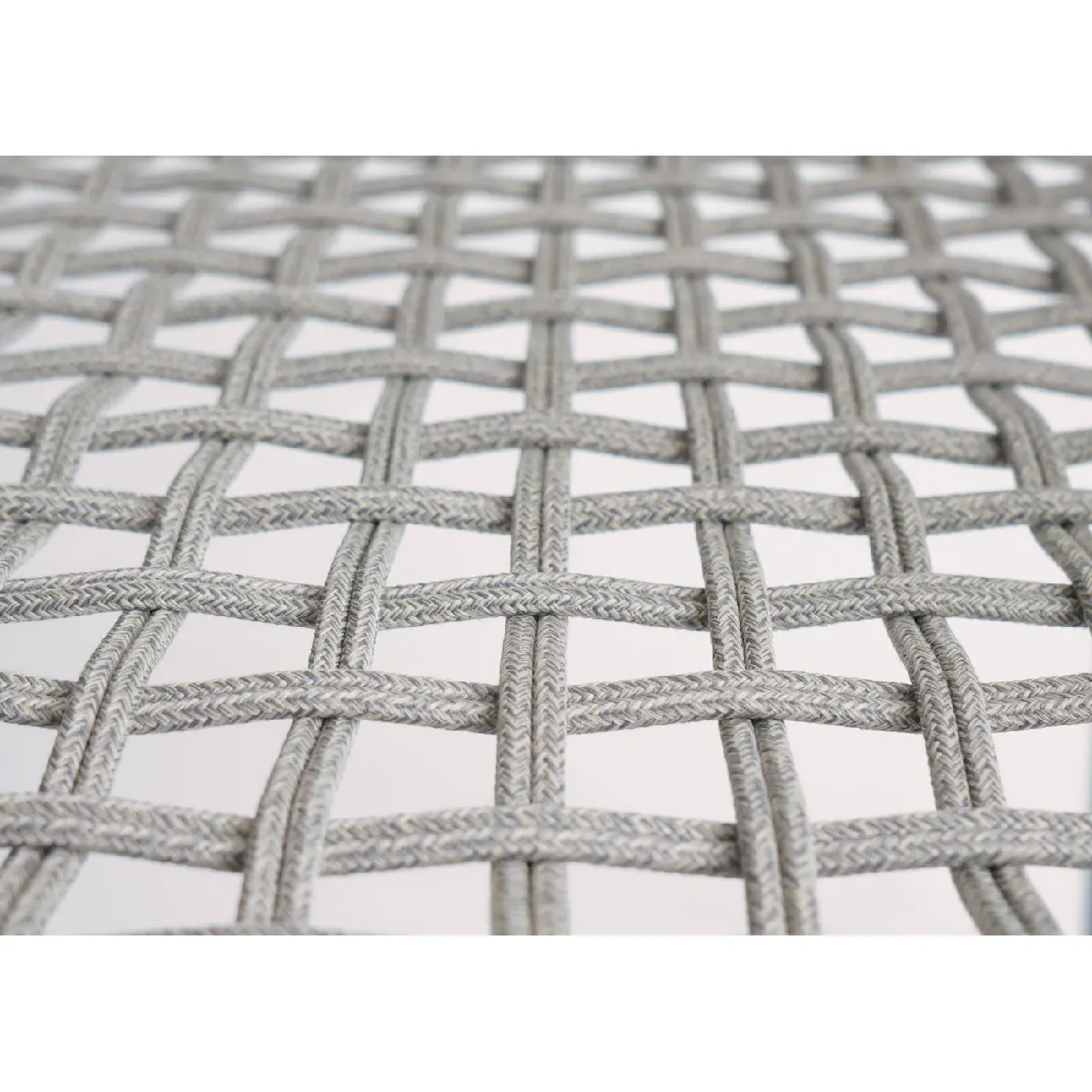 La combinaison de la corde tressée élastique et d'un rembourrage généreux du dossier crée une assise souple qui s'adapte au corps. Le coussin d'assise de 5 cm d'épaisseur et la mousse de dossier de 12 cm apportent un maintien appréciable pour des moments prolongés. La construction en aluminium revêtu par poudre reste à la fois robuste et maniable, avec des protections de sol en plastique pour plus de stabilité. Les dimensions équilibrées (81 x 54 x 62 cm, hauteur d'assise 46 cm) favorisent une posture naturelle en extérieur.