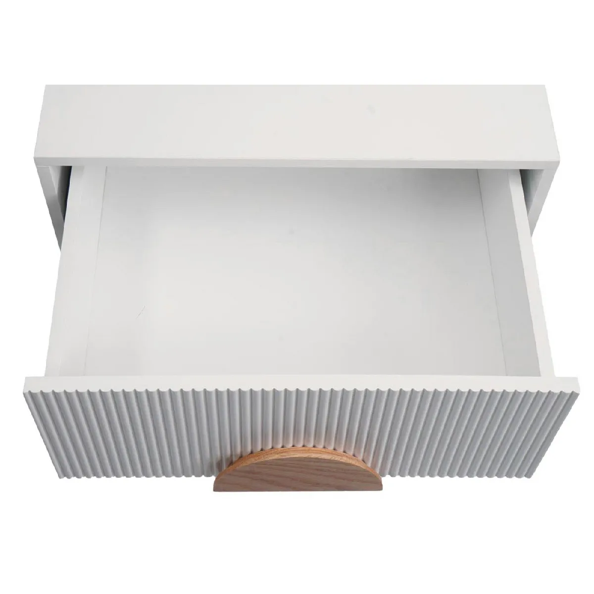 - Corps et tiroirs : MDF de paulownia et de pin avec revêtement mélaminé