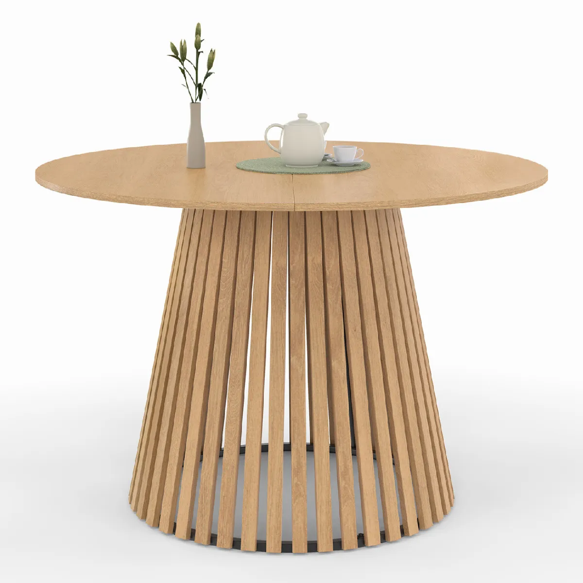 Table à Manger Ronde - 6 Personnes - Pied en Lattes MDF - 110 cm - Bois