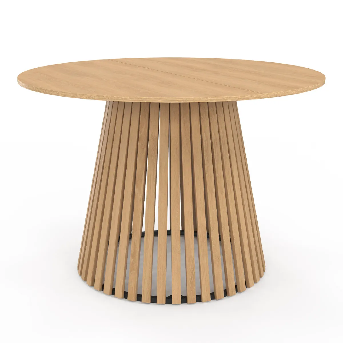 Laissez-vous séduire par cette table à manger ronde et son piétement conique ajouré qui sublimera votre pièce à vivre !Ses dimensions astucieuses, avec son plateau de 110 cm de diamètre, vous permettent d'accueillir jusqu'à 6 convives. Une table idéale pour des moments conviviaux en famille ou entre amis ! De plus, sa forme ronde design facilite la circulation au sein de la pièce.Pratique et élégante, elle répondra à tous vos besoins ! Que ce soit pour organiser un dîner en famille ou pour travailler sur votre ordinateur, cette petite table à manger saura combler toutes vos attentes.Cette table se fondra à merveille dans tous les types d'intérieur en y apportant une atmosphère chaleureuse grâce à son coloris bois. Son piétement original avec lattes ajouré apportera, de son côté, une touche sophistiquée.Son pied central est fait de lattes verticales en MDF et sa base est en métal, ce qui lui confère stabilité et robustesse, sans oublier le côté esthétique ! Optez pour le style moderne et craquez pour la table ronde 6 personnes CARMEN !Dimensions de la table à manger CARMEN ronde pied bois en lattesDimensions globales : Longueur 110 cm x largueur 110 cm x Hauteur 75 cmDiamètre du pied : 70 cmMatériaux : Panneaux de particules mélaminé, lattes en MDF, base pied en métalColoris : boisPlateau en deux partiesPeut accueillir jusqu'à 6 convivesÀ monter soi-mêmeDécouvrez l'ensemble de notre collection moderne sur notre boutique en ligne !