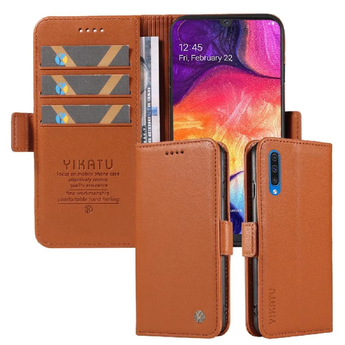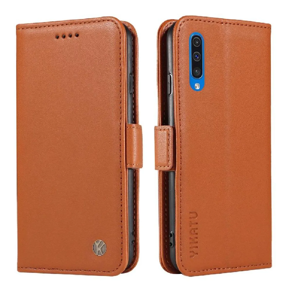 Coque pour Flip Étui Pour Samsung Galaxy A50 Faux Cuir Premium Et Élégant Logo Gaufrage Avec Fentes À Cartes Léger Et Luxe FOXDOCK Marron