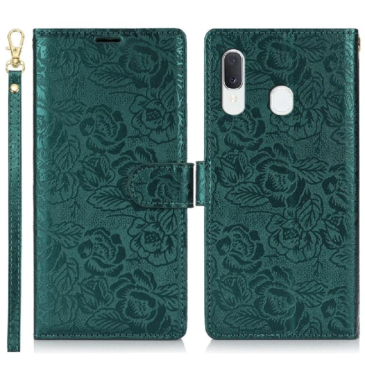 Coque pour Flip Étui Pour Samsung Galaxy A20/A30 Fermeture Magnétique TPU Doux Portefeuille Lanière De Poignet FOXDOCK Vert