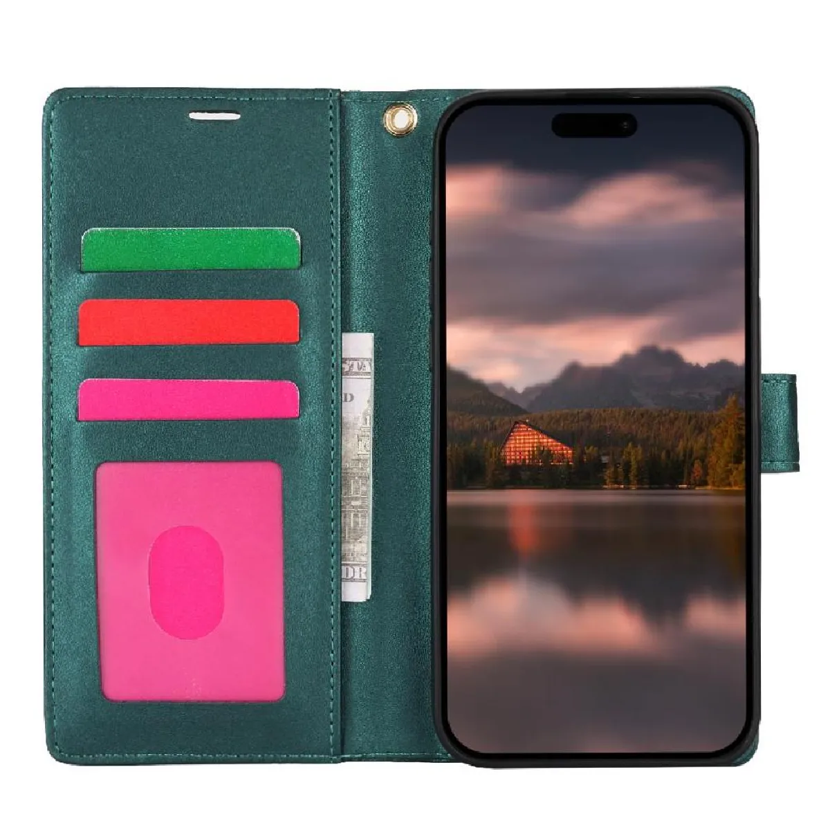 Étui portefeuille cuir PU - Fermeture magnétique - Protection antichoc - Lanière de poignet