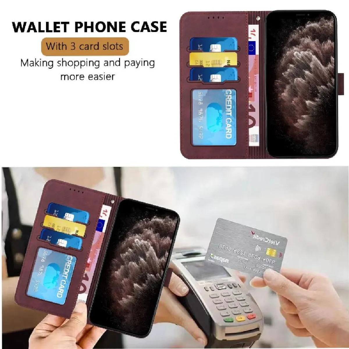 Étui en cuir portefeuille portefeuille souple et confortable en PU.