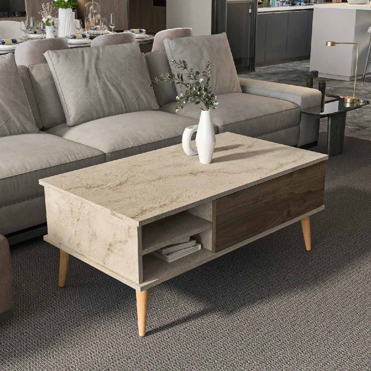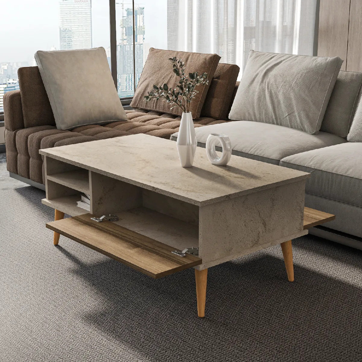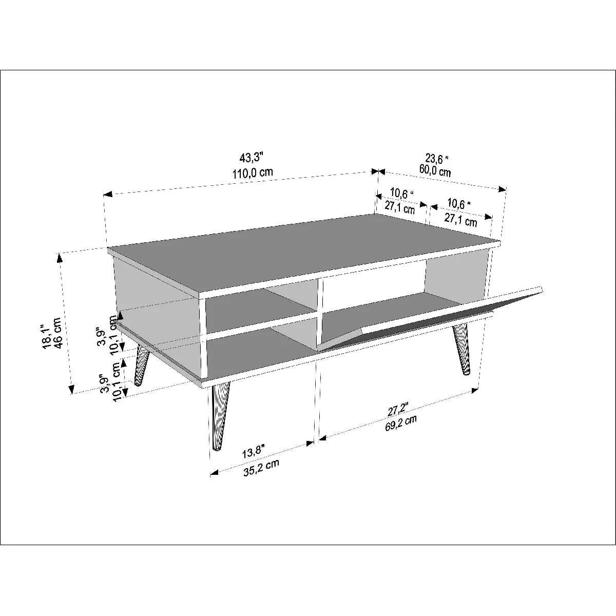 Table basse avec niches et armoires - Pieds en MDF - Bois d'ingénierie 18 mm - Noir et Alina