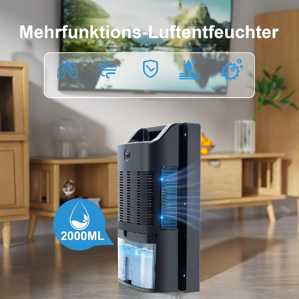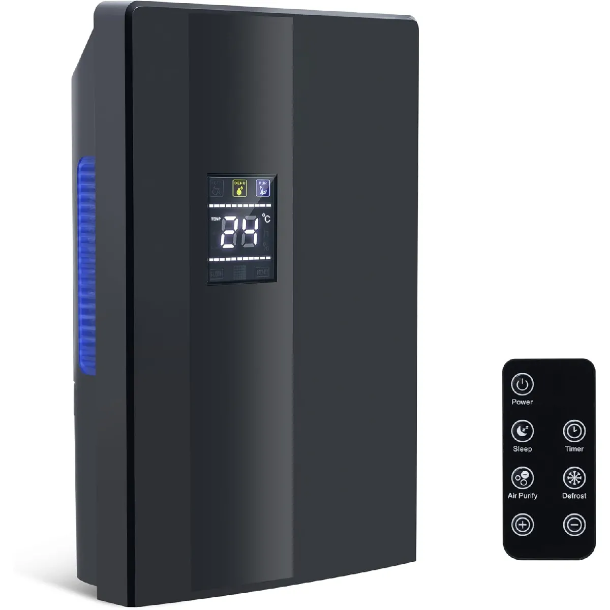 Déshumidificateur 2000 ml - Noir - Télécommande - Mode nuit - Nettoyage UV - Minuteur