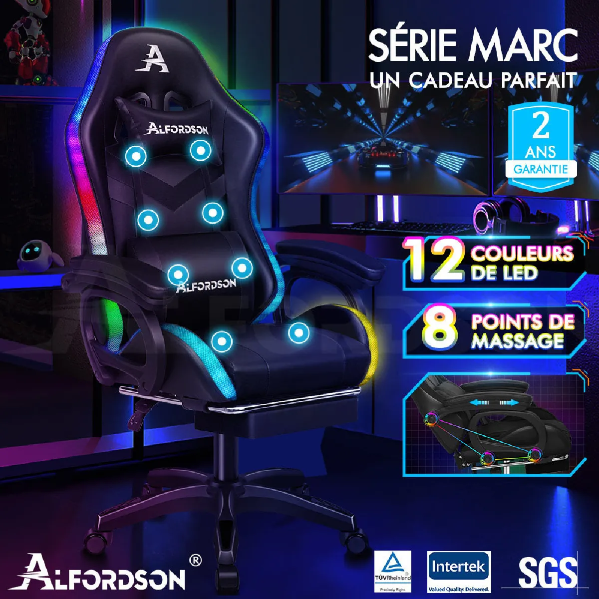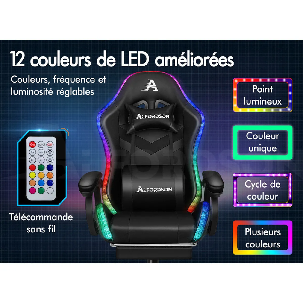 Alfordson Chaise Gaming LED et Massante