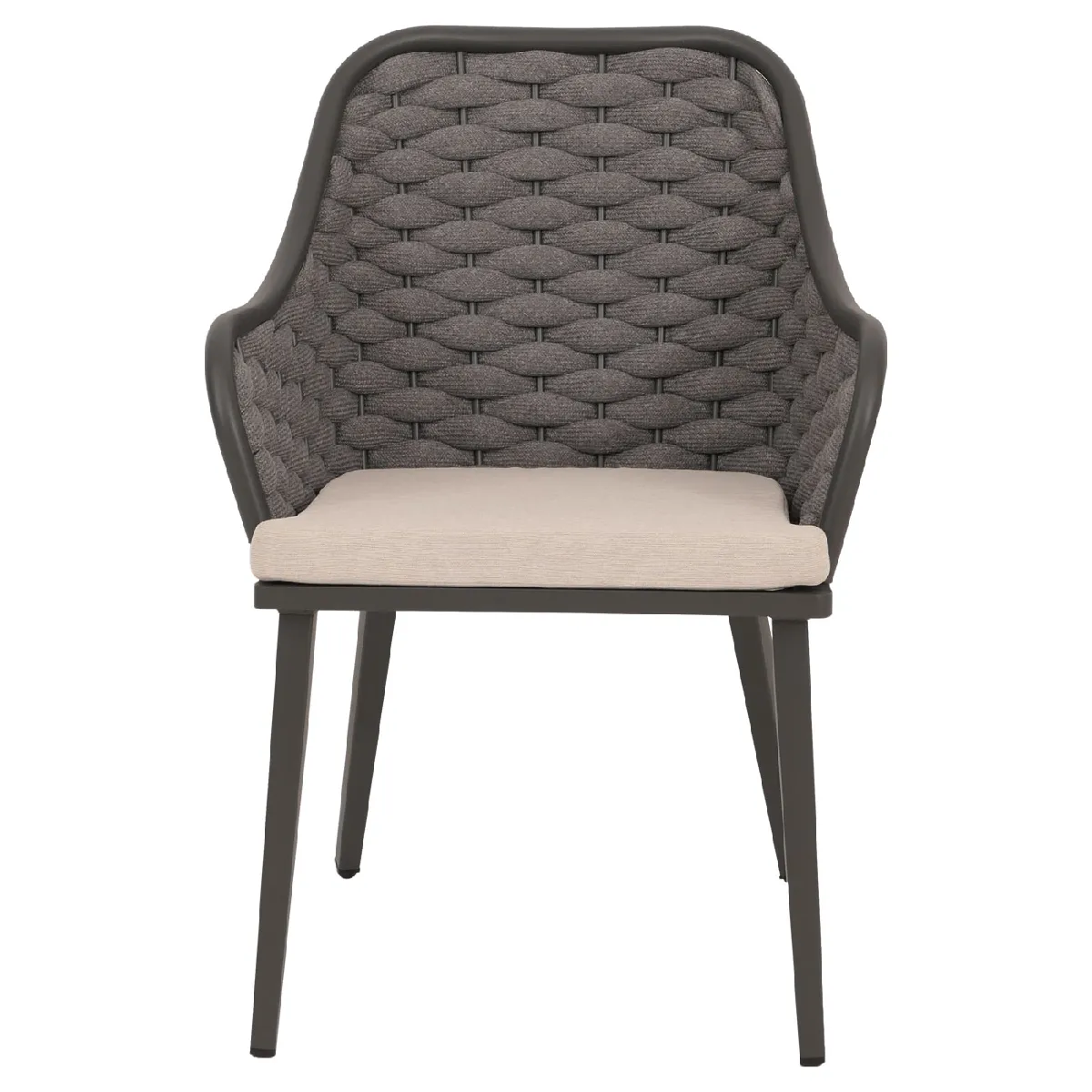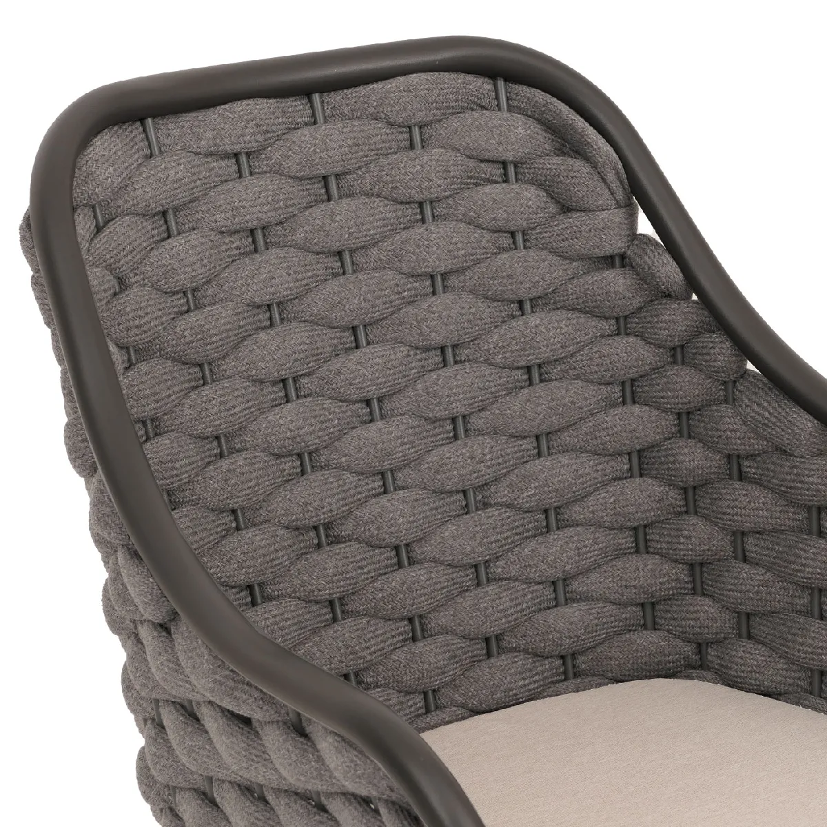Le tressage en corde en textile polyester épouse le corps pour une assise aérée et confortable lors des journées chaudes, tandis que le coussin d'assise en oléfine 100 % polypropylène apporte un maintien souple. Le revêtement hydrofuge limite la pénétration de l'humidité et accélère le séchage après la pluie, utile pour enchaîner les moments de détente. La fermeture éclair intégrée permet de retirer facilement la housse pour l'entretien, ce qui simplifie le nettoyage régulier et prolonge l'aspect soigné au fil des saisons.