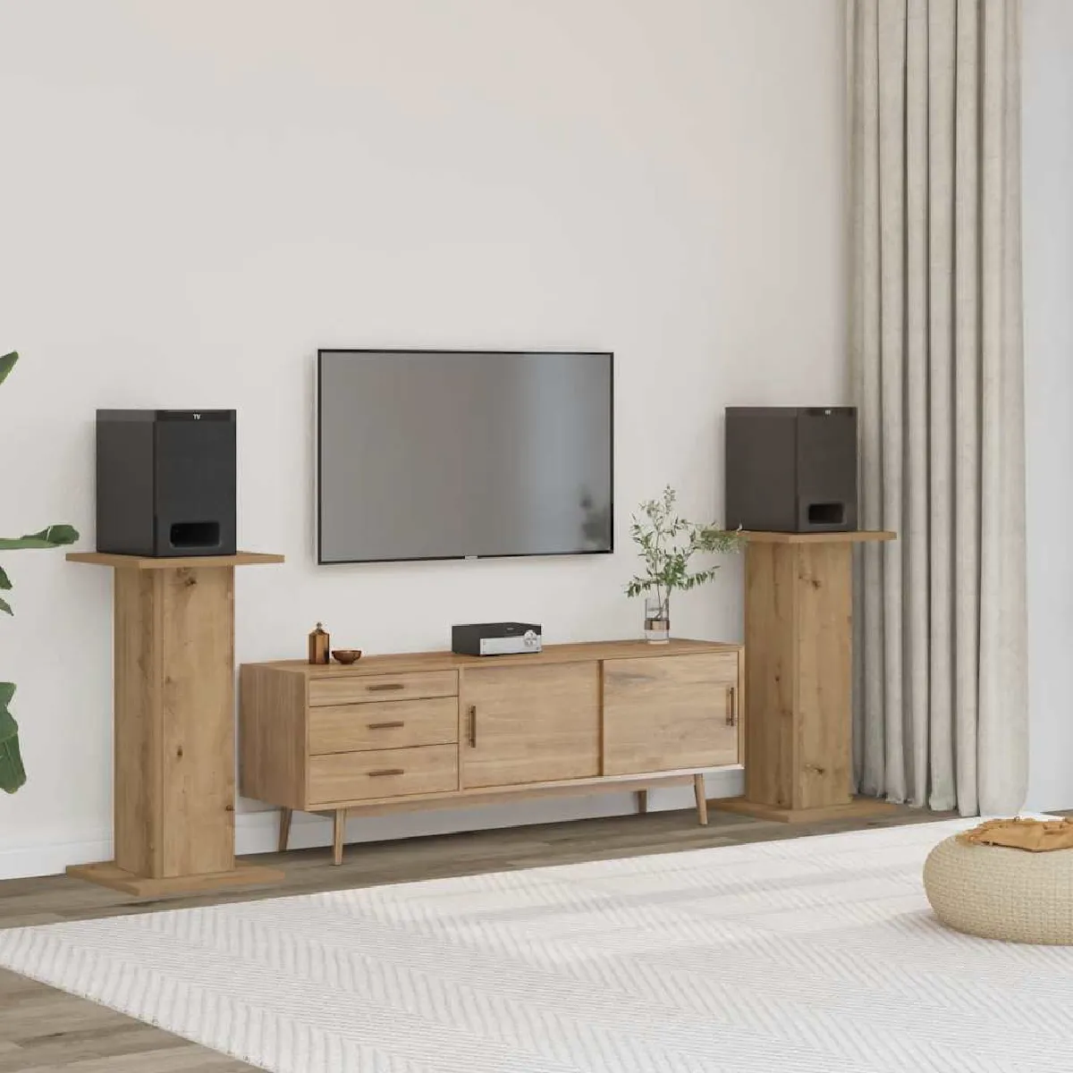 Supports d'enceintes - Bois d'ingénierie - Conception creuse - Hauteur 60cm - Capacité 60kg