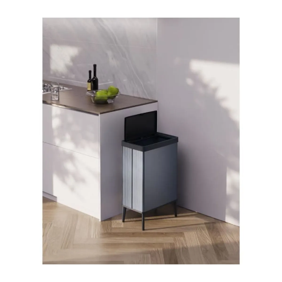 Le système d'ouverture touch permet une utilisation hygiénique sans contact direct avec le couvercle. Ce mécanisme innovant garantit une fermeture hermétique pour neutraliser les odeurs, idéal pour les pièces à fort trafic comme la cuisine ou le salon.