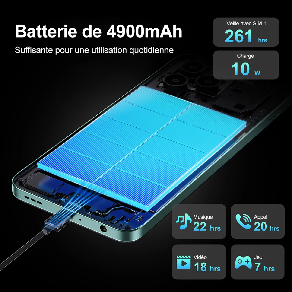 -Capacité de la batterie: 4900mAh