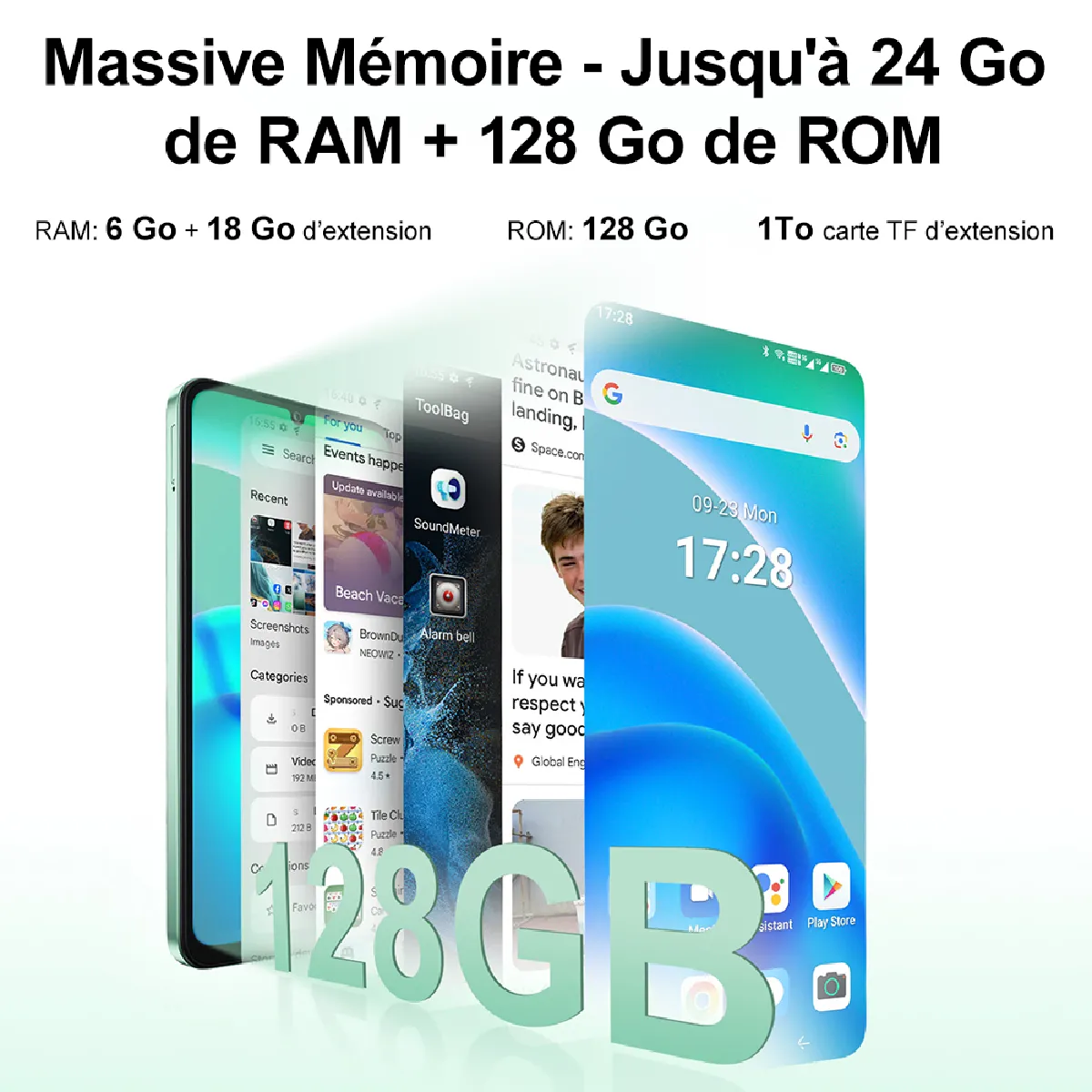 -Capacité de stockage du produit(ROM): 128Go