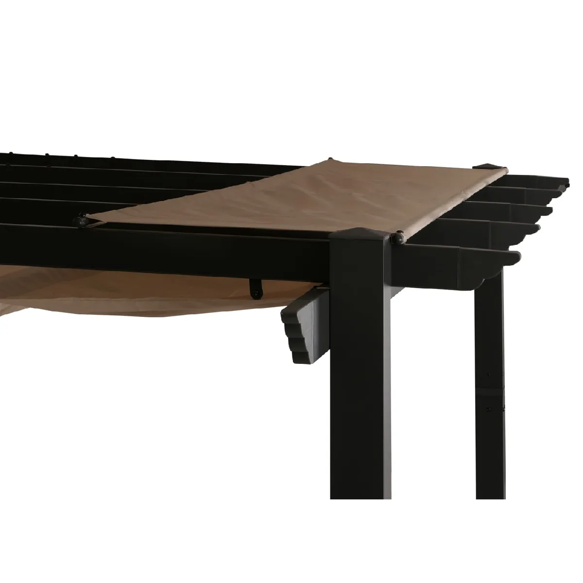 Le toit coulissant offre un contrôle fluide de l'ombre : ouvrez partiellement ou totalement selon l'ensoleillement, puis fixez le panneau replié via la poignée textile pour plus de sécurité. Une protection contre la pluie intégrée pour le toit replié aide à garder la toile sèche lorsque le panneau est remonté. La stabilité est renforcée par des poteaux de 8x8 cm, limitant les mouvements et optimisant le confort sous l'abri au quotidien.
