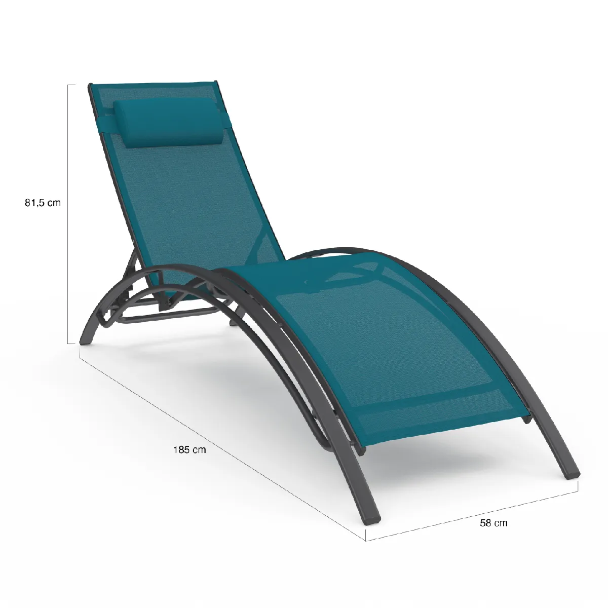 Avec leur allure moderne, ces transats HAVANE bleu canard s'accorderont avec tous les styles de mobilier extérieur. Leur structure légère et la capacité d'inclinaison vous garantissent un confort personnalisé à chaque moment de la journée. Ces transats de jardin sont dotés d'un dossier réglable en 4 positions, vous permettant d'adapter votre posture selon vos envies : allongé pour une sieste au soleil, légèrement incliné pour lire un livre ou encore assis pour un moment convivial entre amis. Pour un confort supplémentaire, un coussin appui-tête est fourni, offrant un soutien pour votre tête. Fabriqués avec une structure en acier gris anthracite, ces transats sont robustes. Leur assise en textilène bleu, matière spécialement conçue pour l'extérieur, est à la fois souple et résistante aux UV.N'attendez plus et profitez d'un moment de détente entre amis ou en famille avec ce lot de 2 transats HAVANE bleu !Astuce : ajoutez des coussins de transat de jardin, également disponibles sur notre boutique en ligne, pour un maximum de confort !Dimensions d'un transat HAVANE bleu canardDimensions globales : Longueur 185 cm x largeur 58 cm x Hauteur 81,5 cm Largeur de l'assise : 46 cmMatériaux : Acier et textilèneCouleurs : structure gris anthracite et toile bleu canardNombre de positions d'inclinaison : 4 Appui-tête inclus Charge maximale supportée : 130 kgVendu par 2À monter soi-mêmeRetrouvez également tous nos transats et bains de soleil disponibles sur notre boutique en ligne !