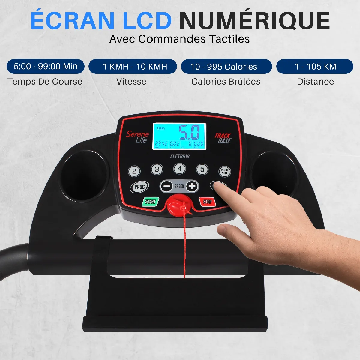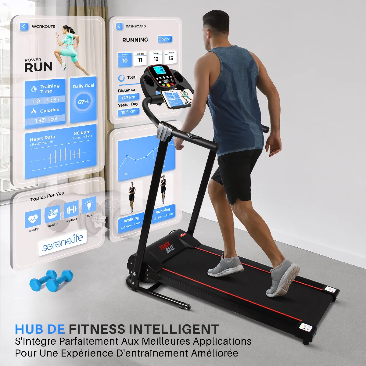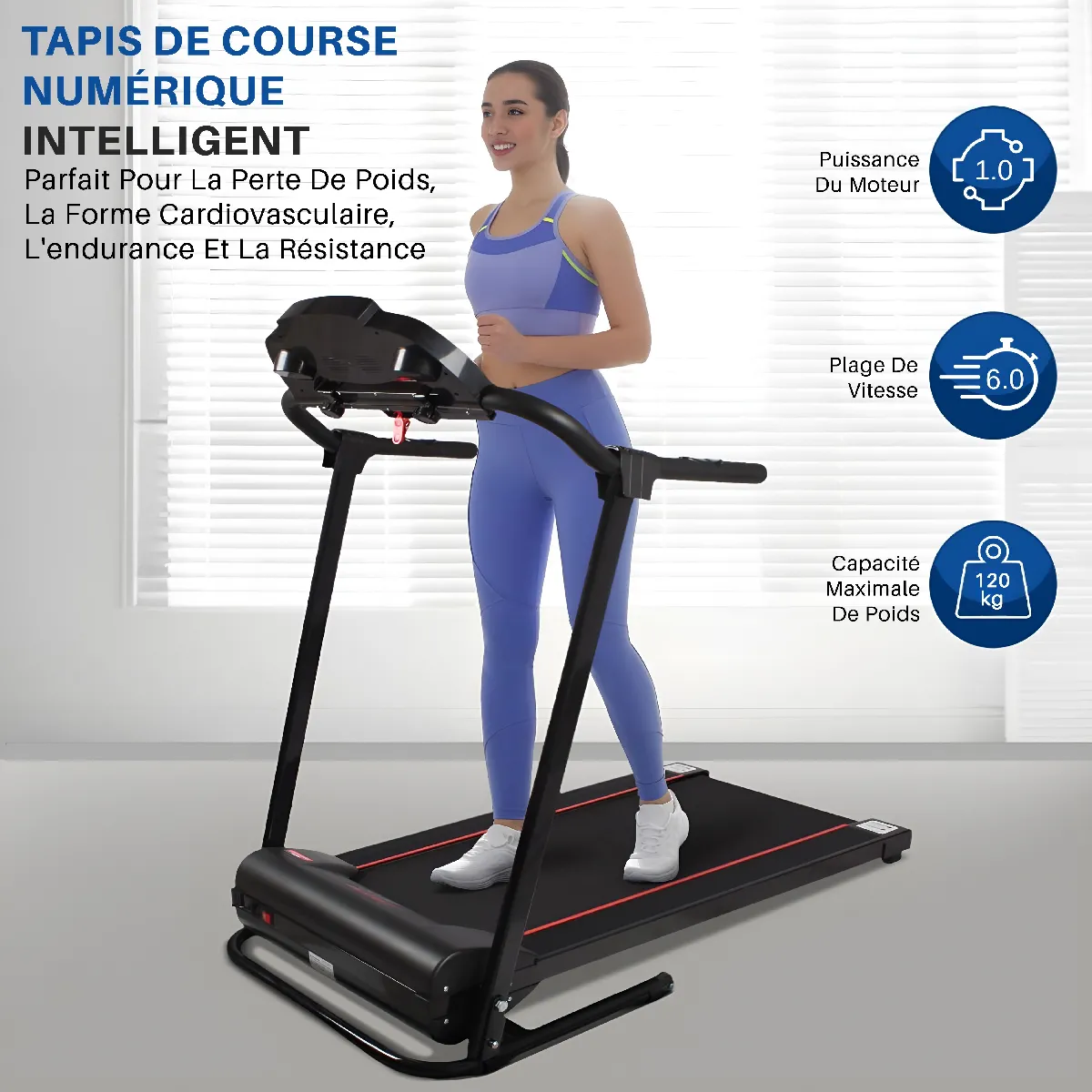 Tapis de course pliable - Moteur 1 HP - Jusqu'à 10 km/h - Bluetooth - Capteurs de pouls