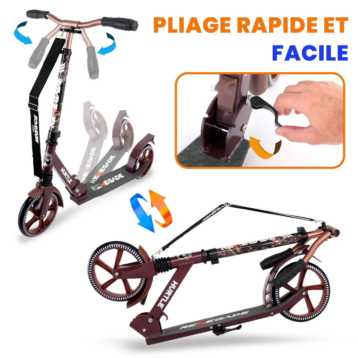 Trottinette pliable - Design camouflage - Roues absorbant les chocs - Guidon ajustable - Supporte jusqu'à 100 kg