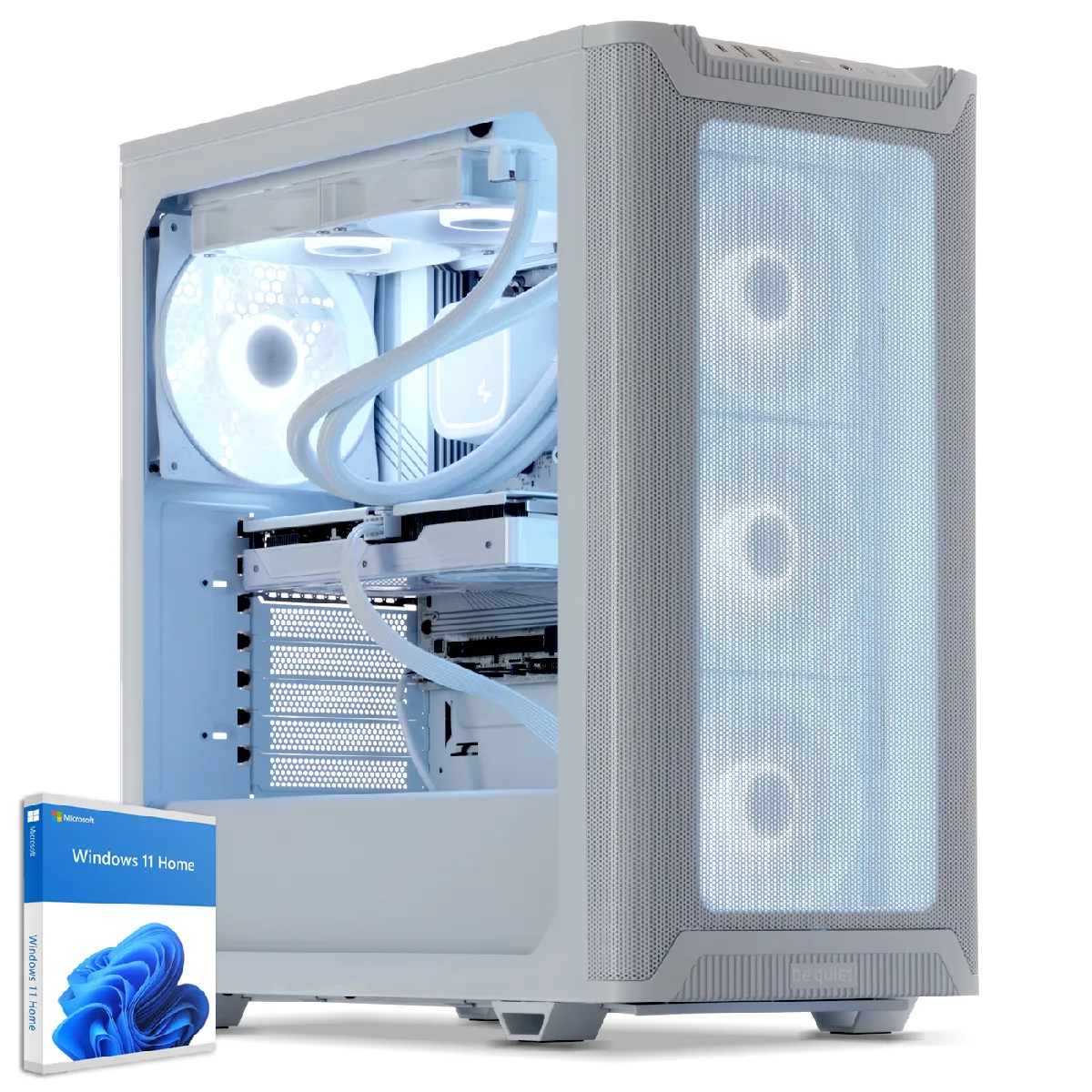 PC Gamer Advanced Watercooling Premium White Edition • AMD Ryzen 7 9700X 8x 3.8Ghz (max 5.5Ghz) • Geforce RTX5080 • 32Go RAM DDR5 6000Mhz • 2To SSD M.2 • WiFi • Bluetooth, USB C 4.0 • Windows 11