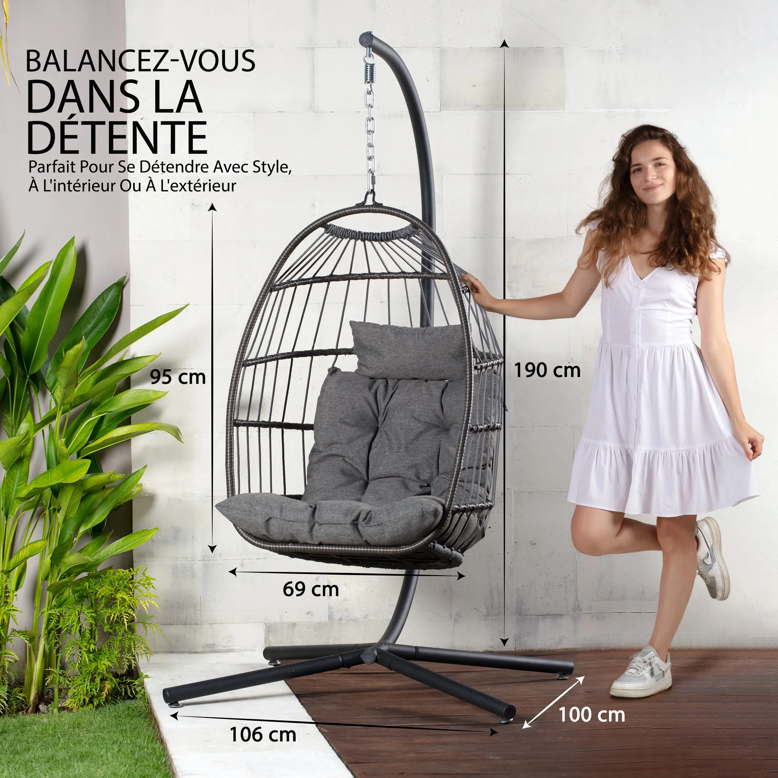 Serenelife Fauteuil œuf suspendu jardin - Gris foncé