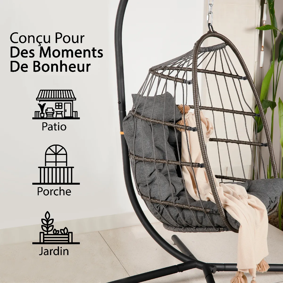 Fauteuil suspendu pliable - Osier tressé - Acier - Supporte 158 kg - Intérieur/Extérieur