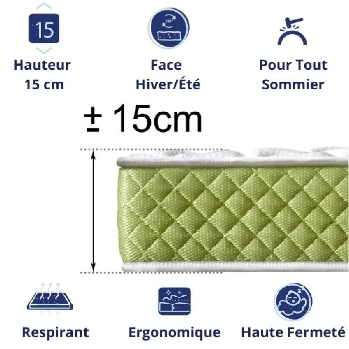 DAGOSTINO HOME Matelas Mousse 140x190 Evergreen - Ferme - Réversible - Côté Été/hiver - H15 Cm