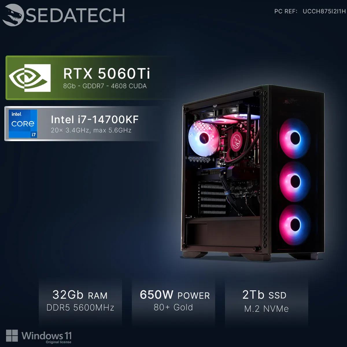 Sedatech PC Gamer • Intel i7-14700KF • RTX5060Ti • 32Go DDR5 • 2To SSD M.2 • Windows 11