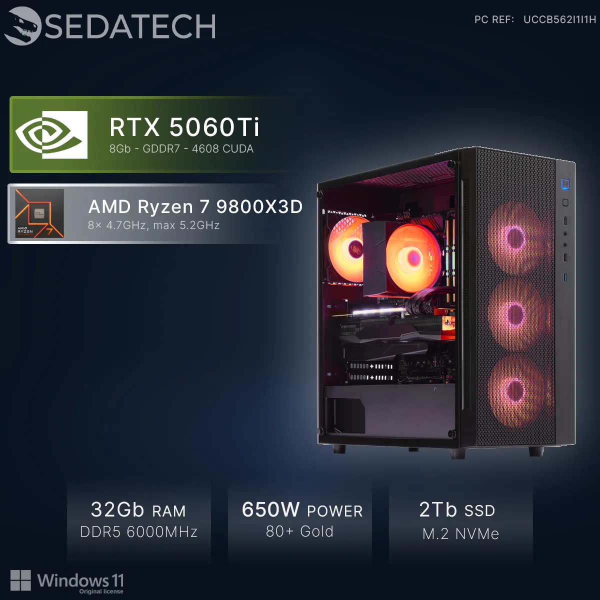 Sedatech PC Gamer ATX • AMD Ryzen 7 9800X3D • RTX5060Ti • 32Go DDR5 • 2To SSD M.2 • Windows 11