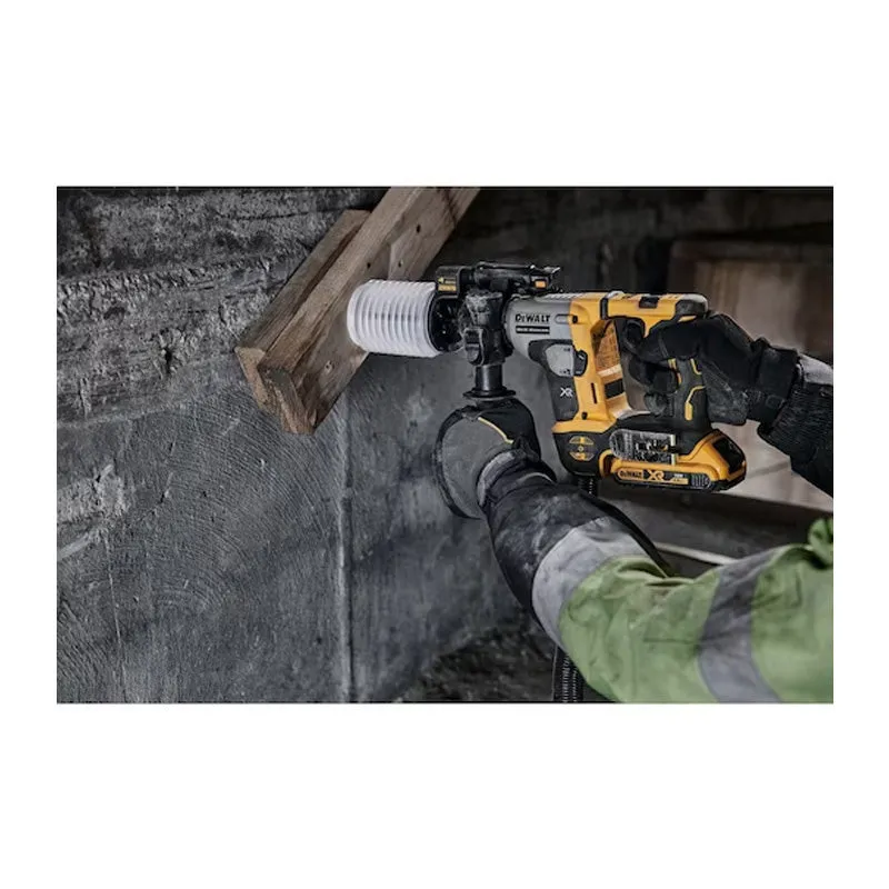 La combinaison d'un format compact et d'une énergie de frappe de 1,4 J pour des perçages efficaces dans le béton en fait un outil pertinent sur chantier et en rénovation. Son architecture sans fil 18 V avec moteur Brushless XR privilégie l'efficacité et la constance des performances, tout en limitant la maintenance. Avec seulement 1,8 kg, il s'utilise facilement en hauteur et dans les zones exigües. La lampe LED à temporisation apporte une meilleure visibilité de la zone de travail, ce qui facilite l'alignement des trous et le contrôle de l'outil dans les environnements sombres.