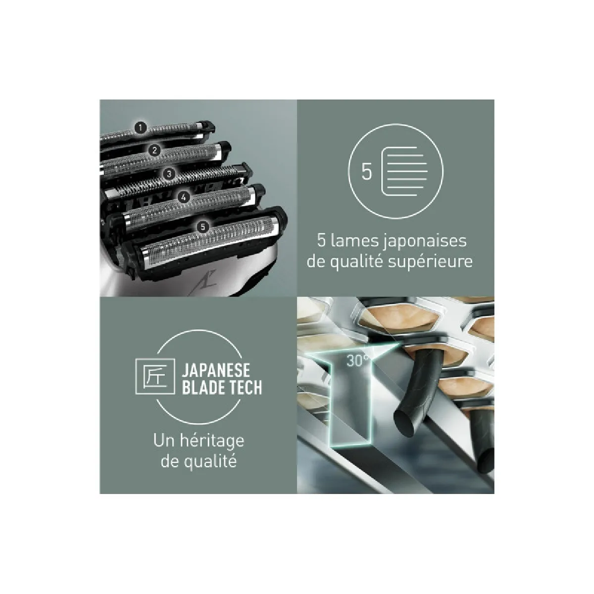 Rasoir électrique homme à grille - 5 lames - Wet & Dry - moteur puissant - capteur de densité - tondeuse de précision - rechargeable