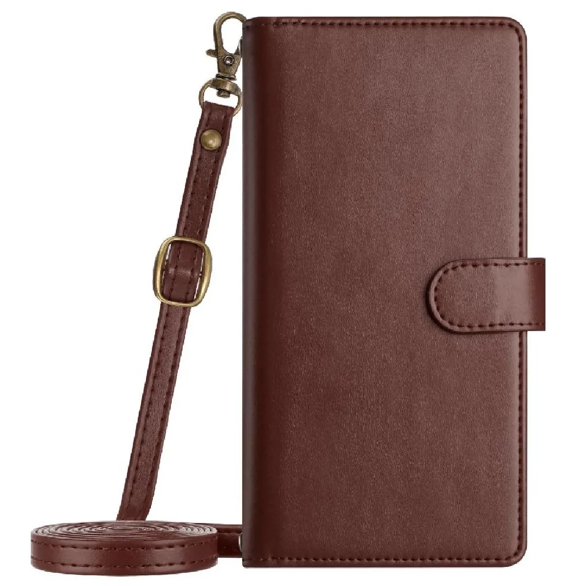 Étui Pour Longue Sangle Xiaomi POCO F6 5G 8 Fentes Pour Cartes Protecive Portefeuille Portefeuille Fermeture Éclair Flip Folio Antichoc FOXDOCK Marron |