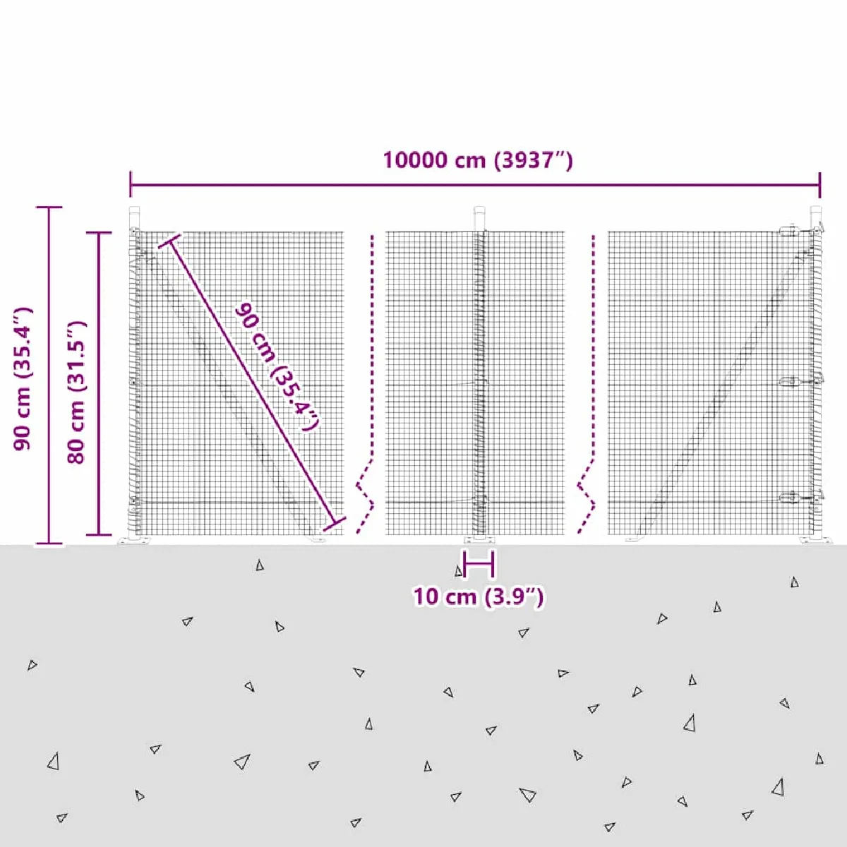 - Dimensions globales: 10000 x 3,2 x 80 cm (L x l x H)