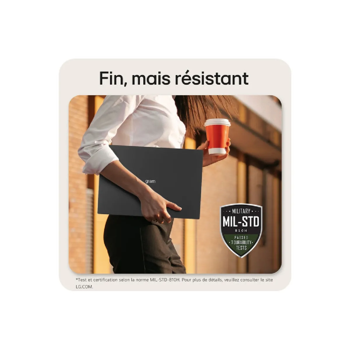 Le châssis de 378,8 x 258,8 x 17,8 mm pèse 1,35 kg, ce qui convient aux déplacements fréquents avec un format 17 pouces orienté confort visuel. L'indice de réparabilité de 8,4/10 et la disponibilité des pièces détachées annoncée 5 ans favorisent la maintenance. Les outils LG comme LG Security Guard et LG gram Link apportent des fonctions pratiques de protection et de continuité entre appareils. L'ensemble vise une utilisation bureautique polyvalente avec un démarrage rapide et un environnement logiciel cohérent.