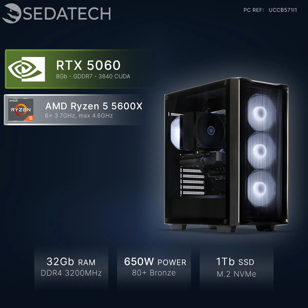 Sedatech PC Gamer, AMD Ryzen 5 5600X, RTX5060, 32Go RAM, 1To SSD, sans OS