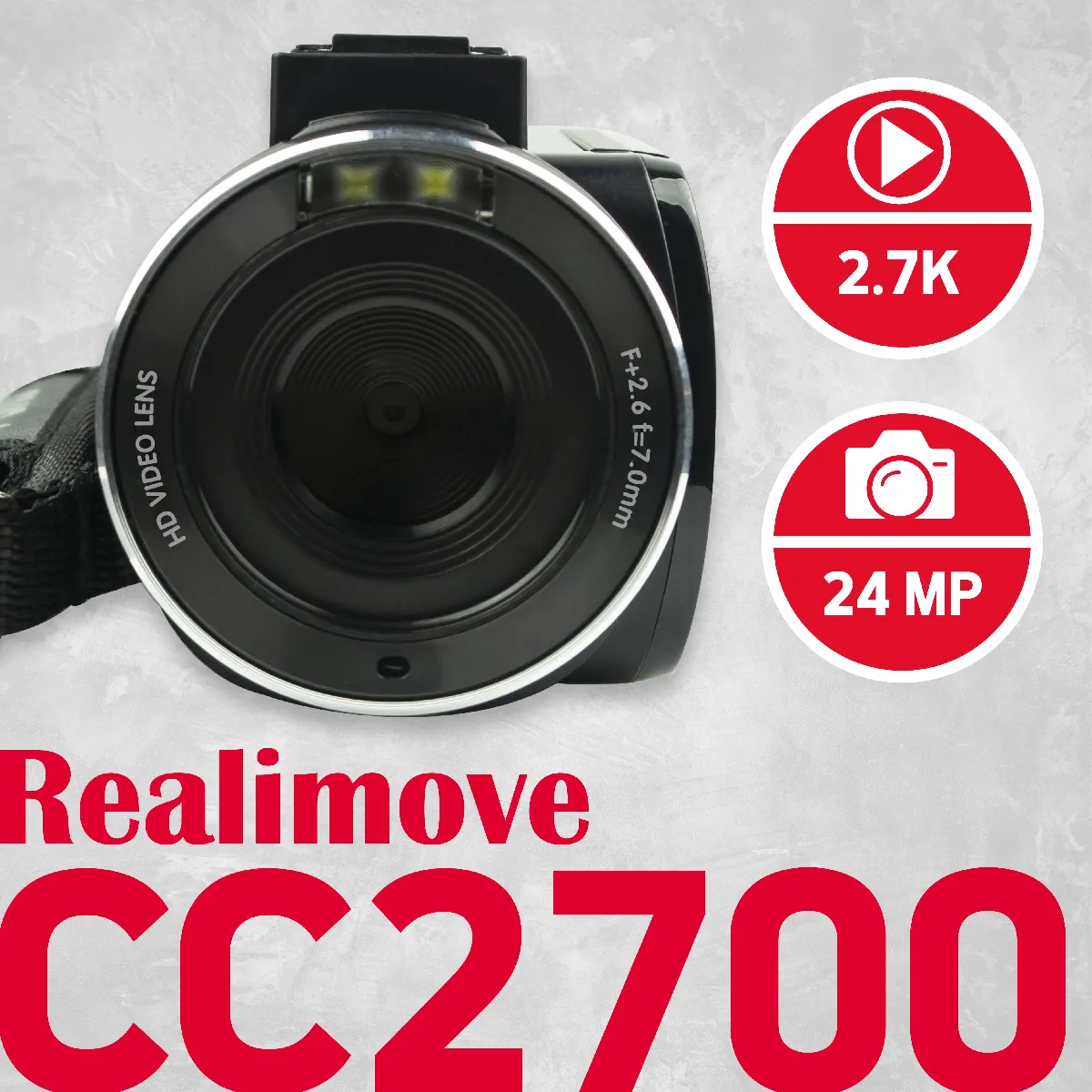 AgfaPhoto AGFA PHOTO Realimove CC2700 – Caméscope Numérique, Vidéo 2.7K, 24MP, Écran Tactile 3'', Zoom 18X, Télécommande, 2 Batteries, Micro, Batterie Lithium - Noir |