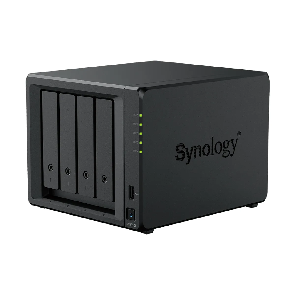 DiskStation DS925+. 4x disques durs insérés, installés. Système testé. Le produit est prêt pour votre travail. Stockage flexible pour tout, du bureau à domicile à la périphérie. Solution de stockage polyvalente à 4 baies avec capacité extensible. Le Synology DS925+ est une solution NAS à 4 baies capable de s'adapter aux besoins croissants de stockage. Propulsé par Synology DiskStation Manager (DSM), il offre une solution tout-en-un flexible pour le partage de données, la synchronisation, la sauvegarde et la surveillance. Réseau rapide et flexible. Les ports doubles 2.5GbE offrent des vitesses de transfert réseau rapides et une redondance accrue. Stockage réseau polyvalent. Exploitez la gestion intégrée des fichiers et des photos, la protection des données, la virtualisation et les solutions de surveillance. Stockage polyvalent pour tout usage. Le DS925+ offre une gestion de fichiers intuitive et complète, une organisation des médias et des options de sauvegarde dès la sortie de la boîte. Ses performances efficaces et sa taille compacte le rendent parfait pour les utilisateurs ayant des contraintes d'espace, y compris les passionnés d'informatique, les professionnels créatifs et les entreprises de toutes tailles. C'est un appareil périphérique idéal pour les succursales ou les points de vente au détail pour les petites entreprises ou les grandes entreprises. Facilité d'utilisation et fonctionnalités de sécurité. Une suite de fonctionnalités de commodité et de sécurité, combinée à l'interface utilisateur intuitive de DSM, garantit une expérience fluide pour les utilisateurs de tous niveaux d'expertise. Solutions de protection des données intégrées. Les solutions sans licence aident à protéger les données et les configurations de votre système Synology, garantissent un temps de fonctionnement maximal du système, et sauvegardent et restaurent tous vos appareils, VMs et applications cloud. Un centre de collaboration, de communication et d'organisation.